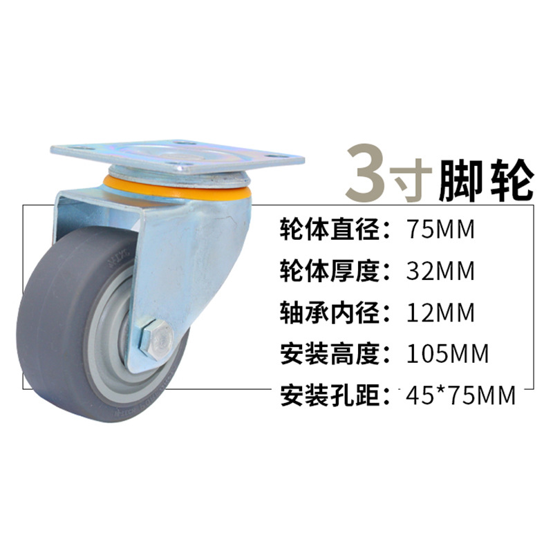 轻型3寸4寸5寸万向轮静音橡胶轮TPR重型脚轮拉车手推平板拖车轮子