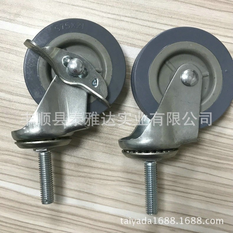 泰雅达2寸3寸灰胶工业脚轮万向轮子带刹车轮空调架货架推车轮子