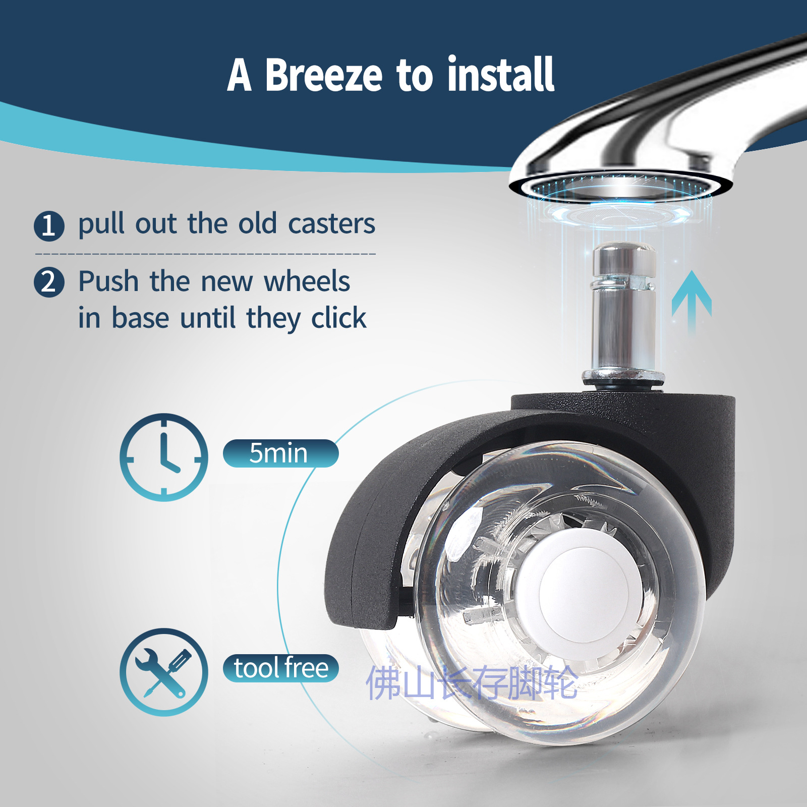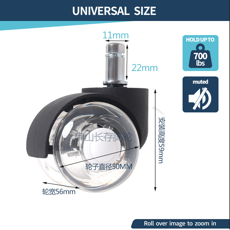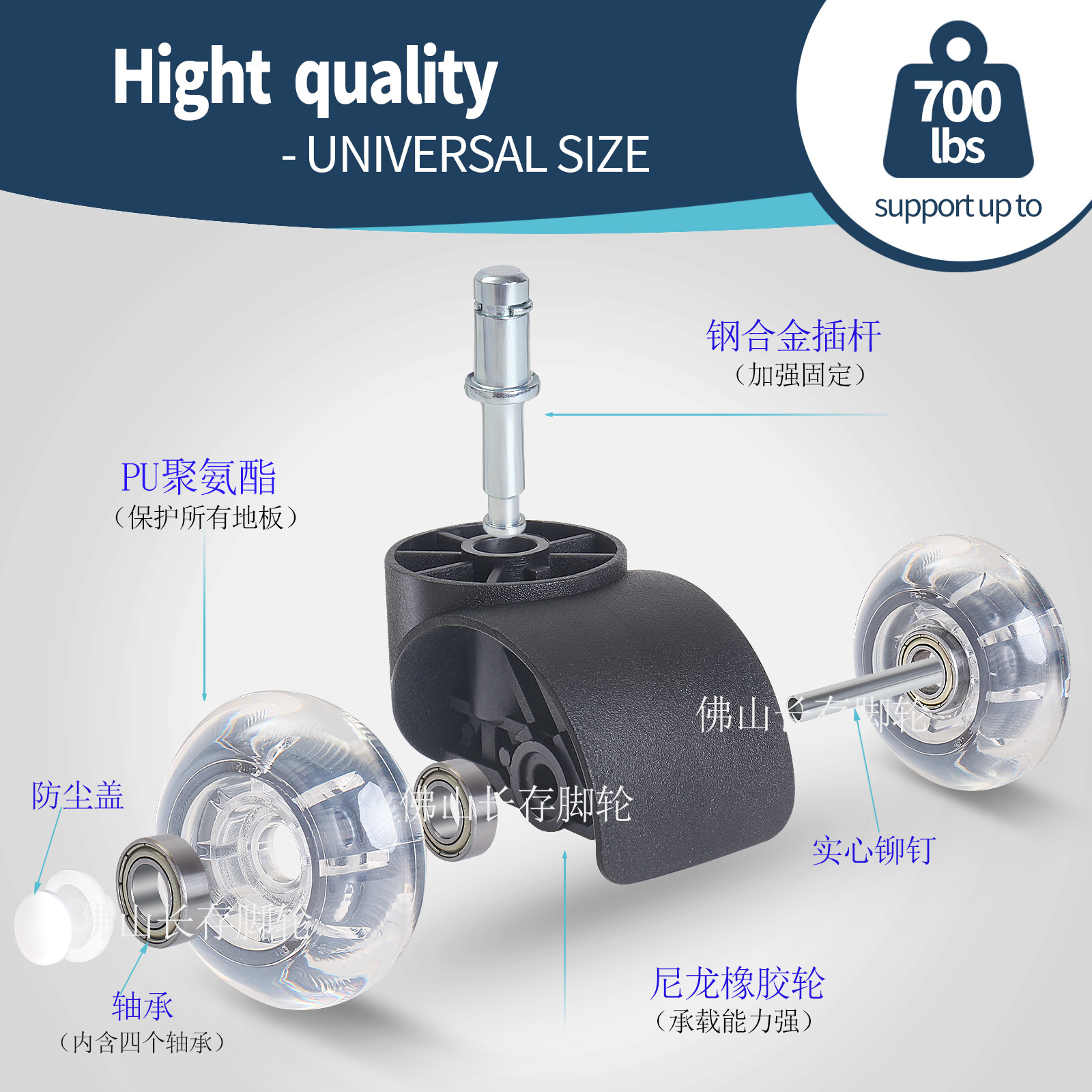 跨境2寸水晶轮万向轮子pu卡簧透明轮办公椅活动脚轮家具静音滑轮
