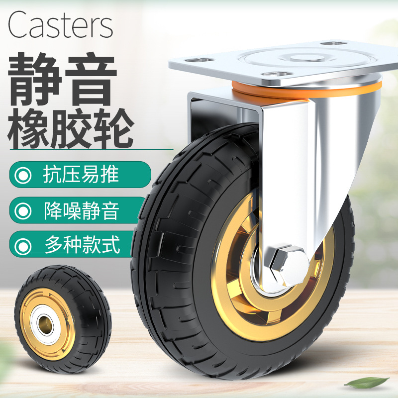 万向橡胶轮4寸5寸轻型轱辘静音小车轮8寸带刹车重型弹力定向脚轮