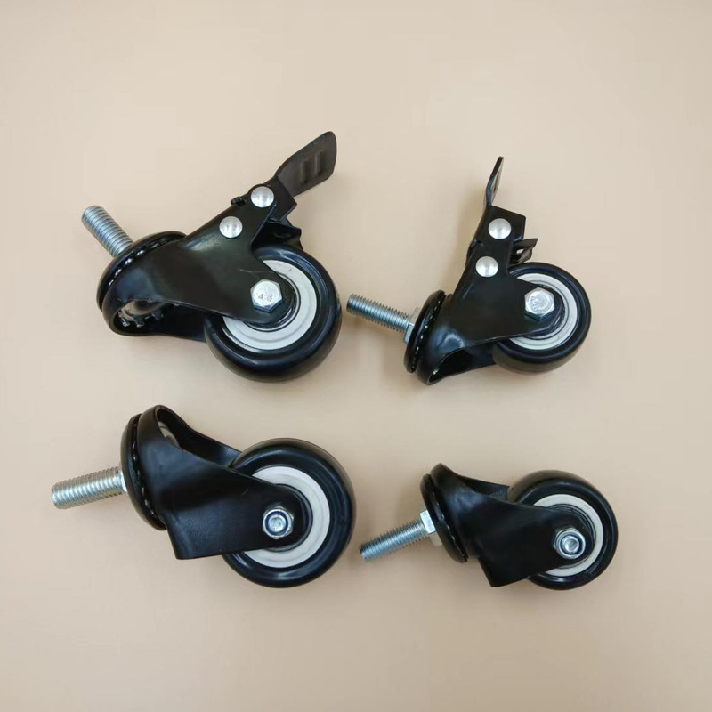 脚轮双轴静音带刹车1.5寸家具丝杆带刹车脚轮 定向轮 2寸万向轮