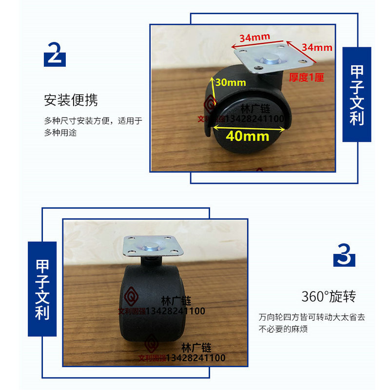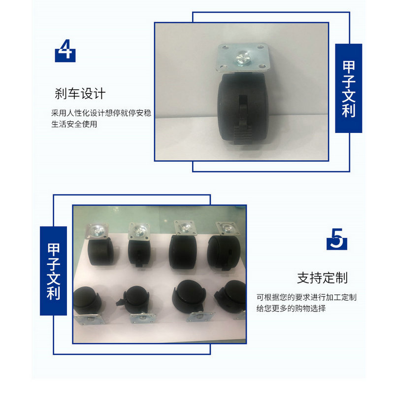 1.5寸万向轮PP塑料带刹车轮2寸万向脚轮平板家具花架塑料1寸脚轮