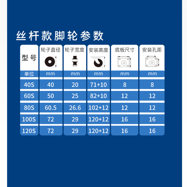 水平调节丝杆40/60/80/100/120/150自动化设备支撑型平底福马轮