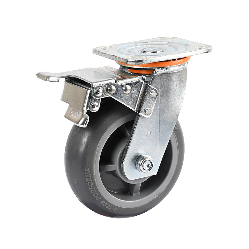 厂家定制重型工业4寸5寸6寸8寸圆顶TPR静音灰胶手推车万向轮脚轮