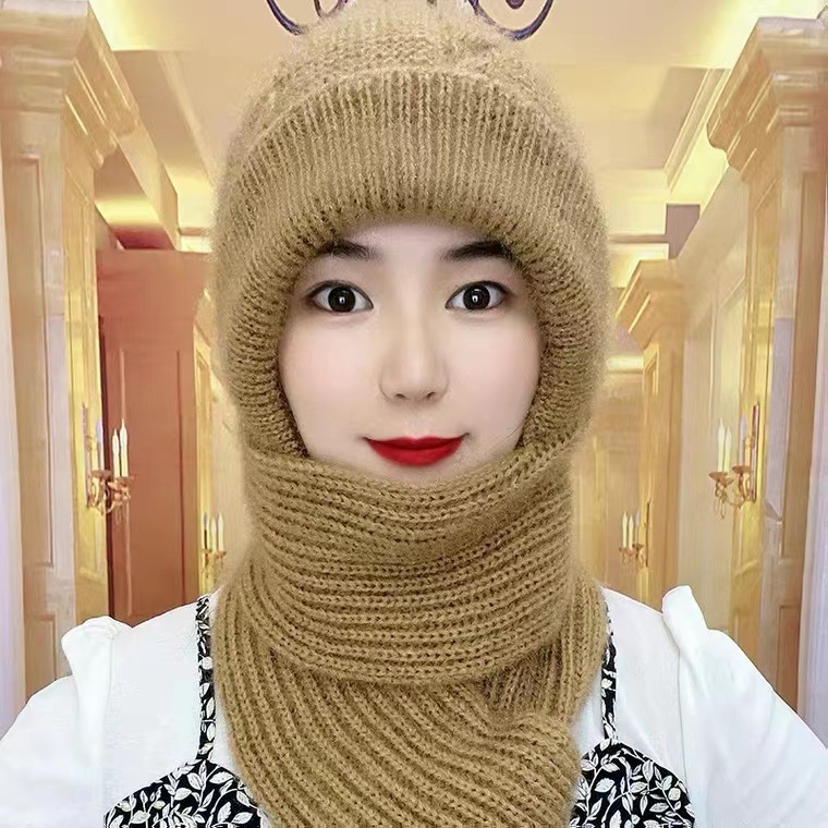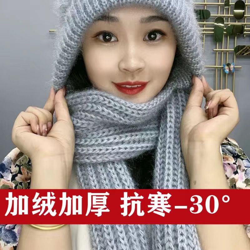 帽子女新款加绒加厚围巾一体风雪帽秋冬季松鼠绒毛线帽保暖网红帽