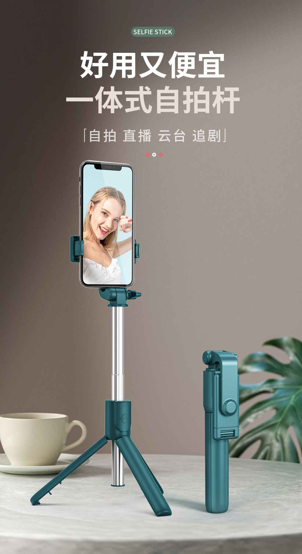 R1S自拍杆 美颜补光灯蓝牙直播摄影折叠一体式手机三脚架R1自拍杆