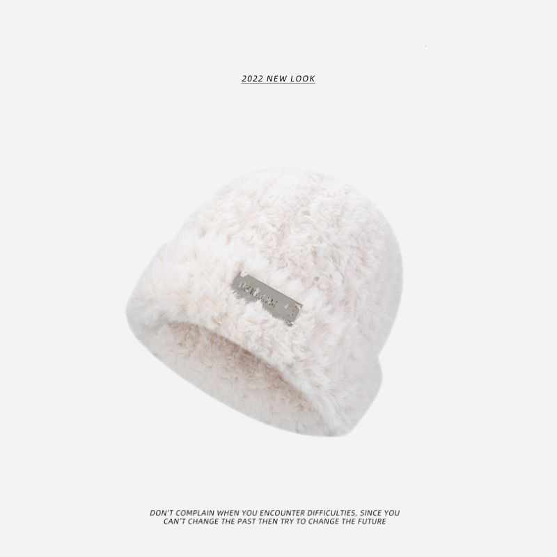 帽子女秋冬季新款小熊耳朵毛绒针织帽大头围皮毛纱保暖包头毛线帽