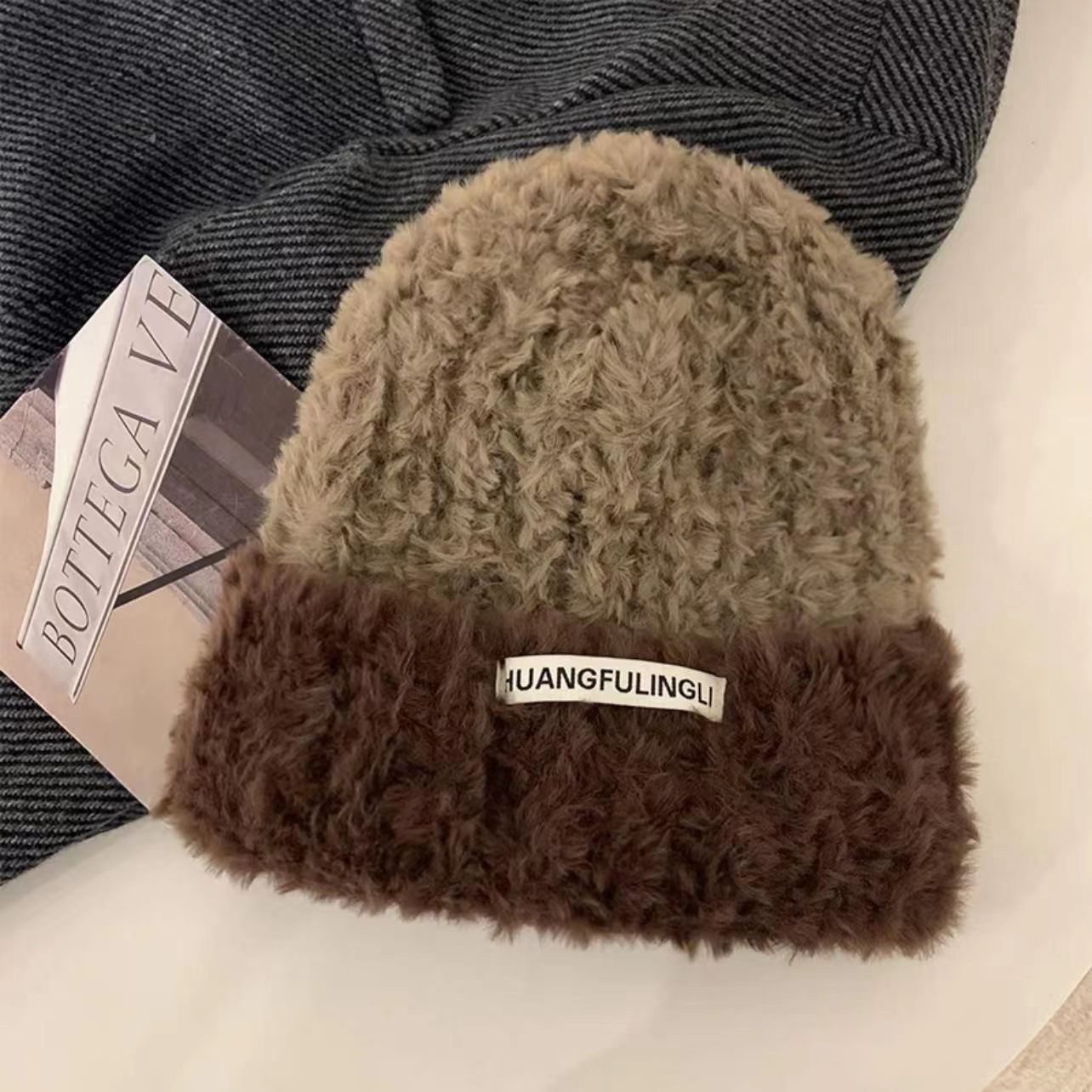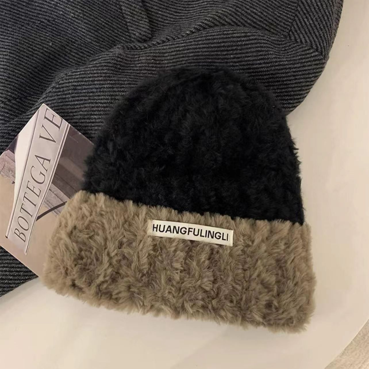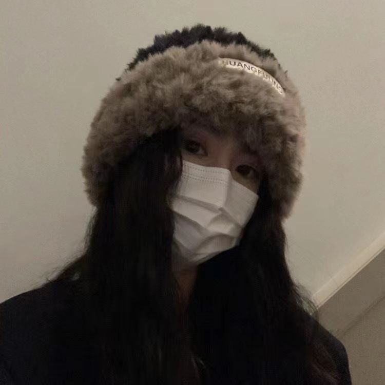 帽子女冬季针织帽条纹款显脸小毛绒加厚大头围护耳堆堆帽毛线帽子
