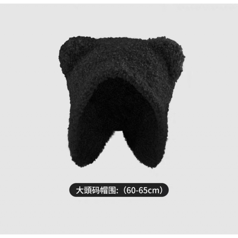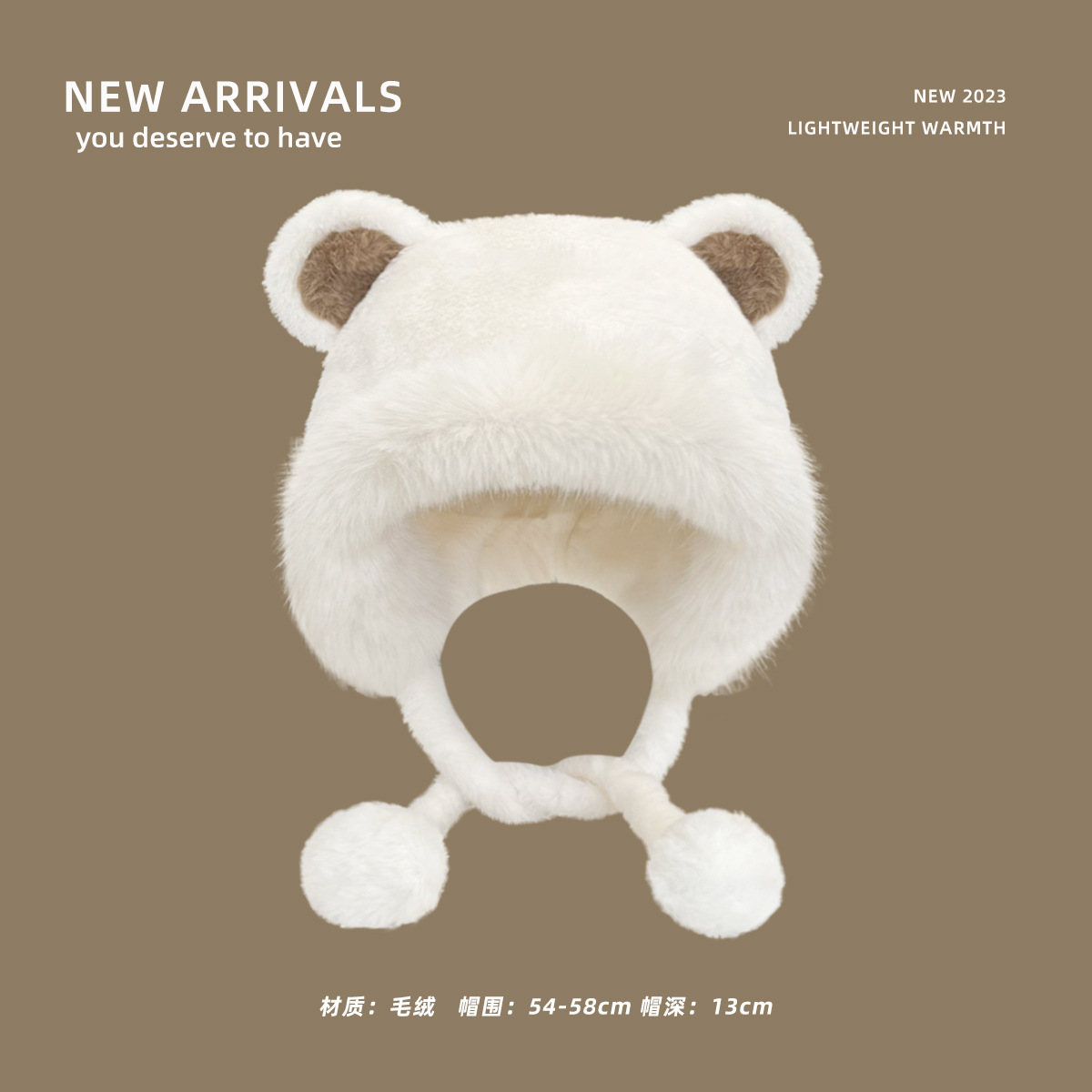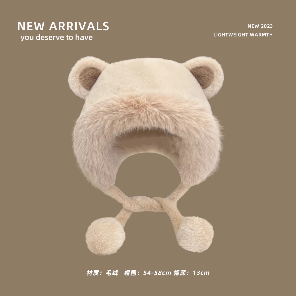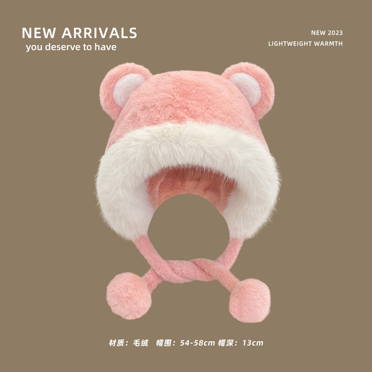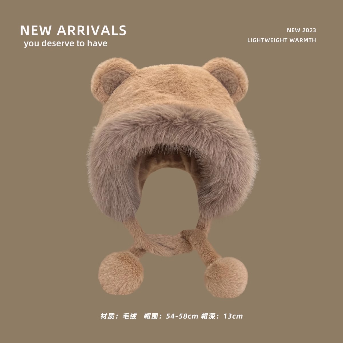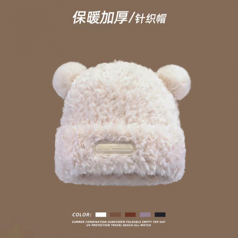 甜美可爱小熊毛绒针织帽子女冬季加厚保暖大头围仿皮草套头护耳帽