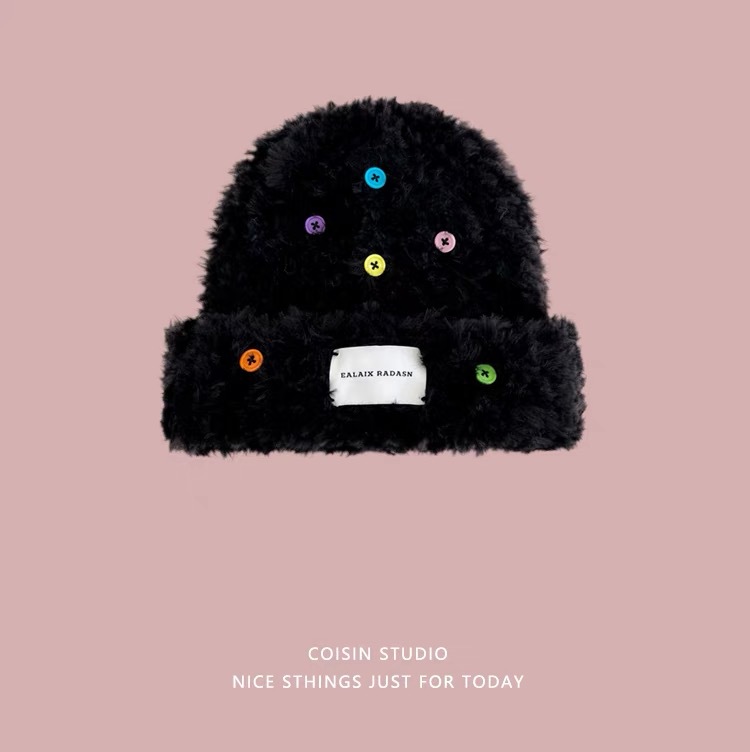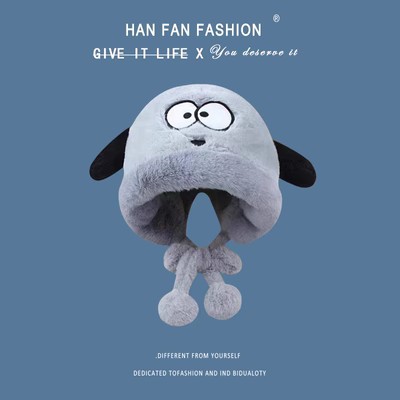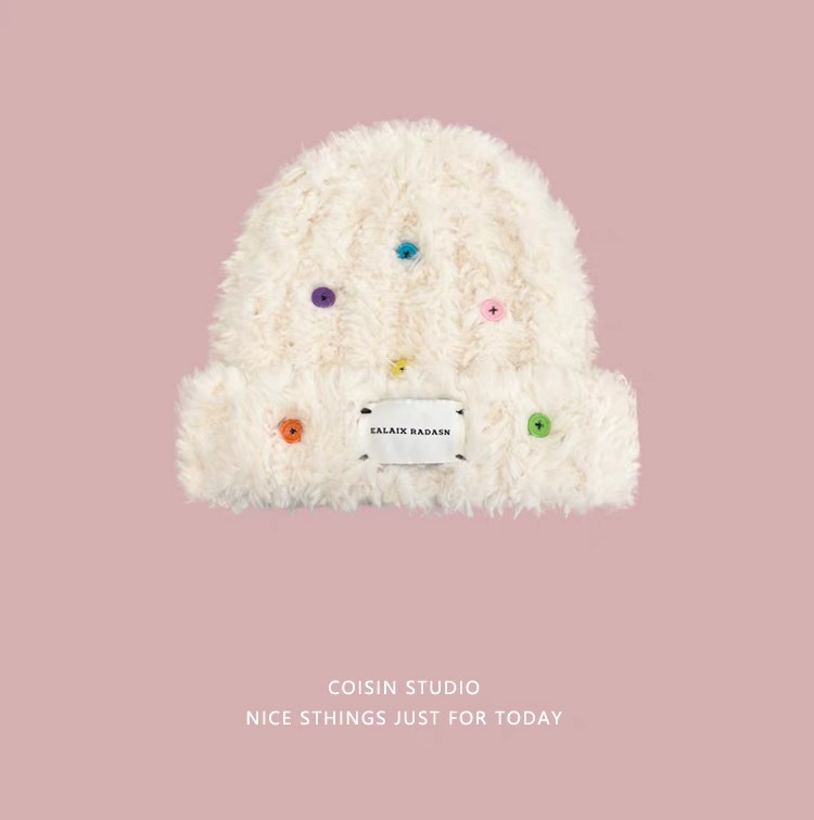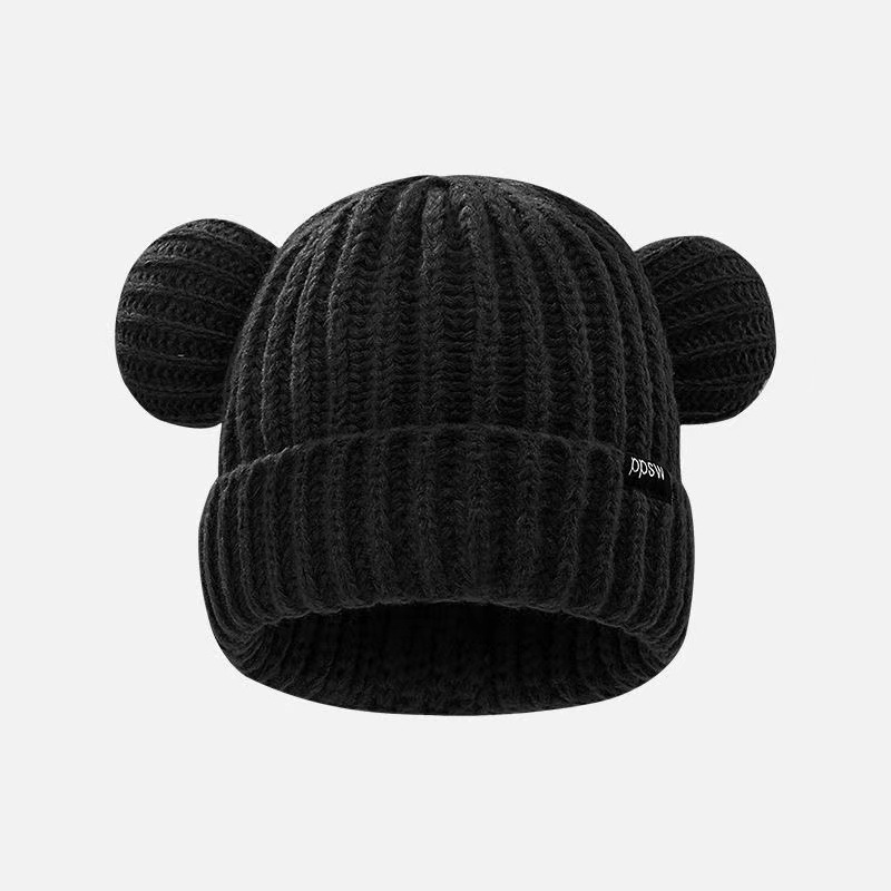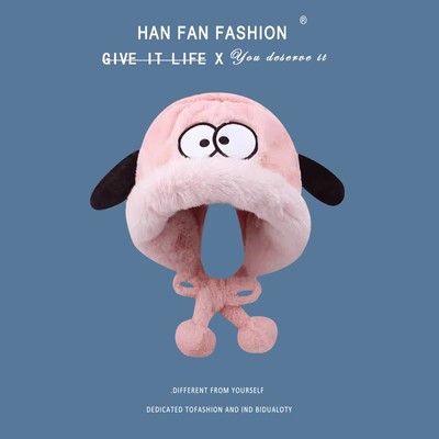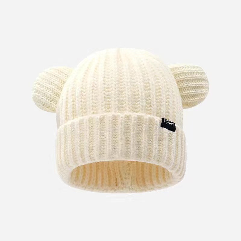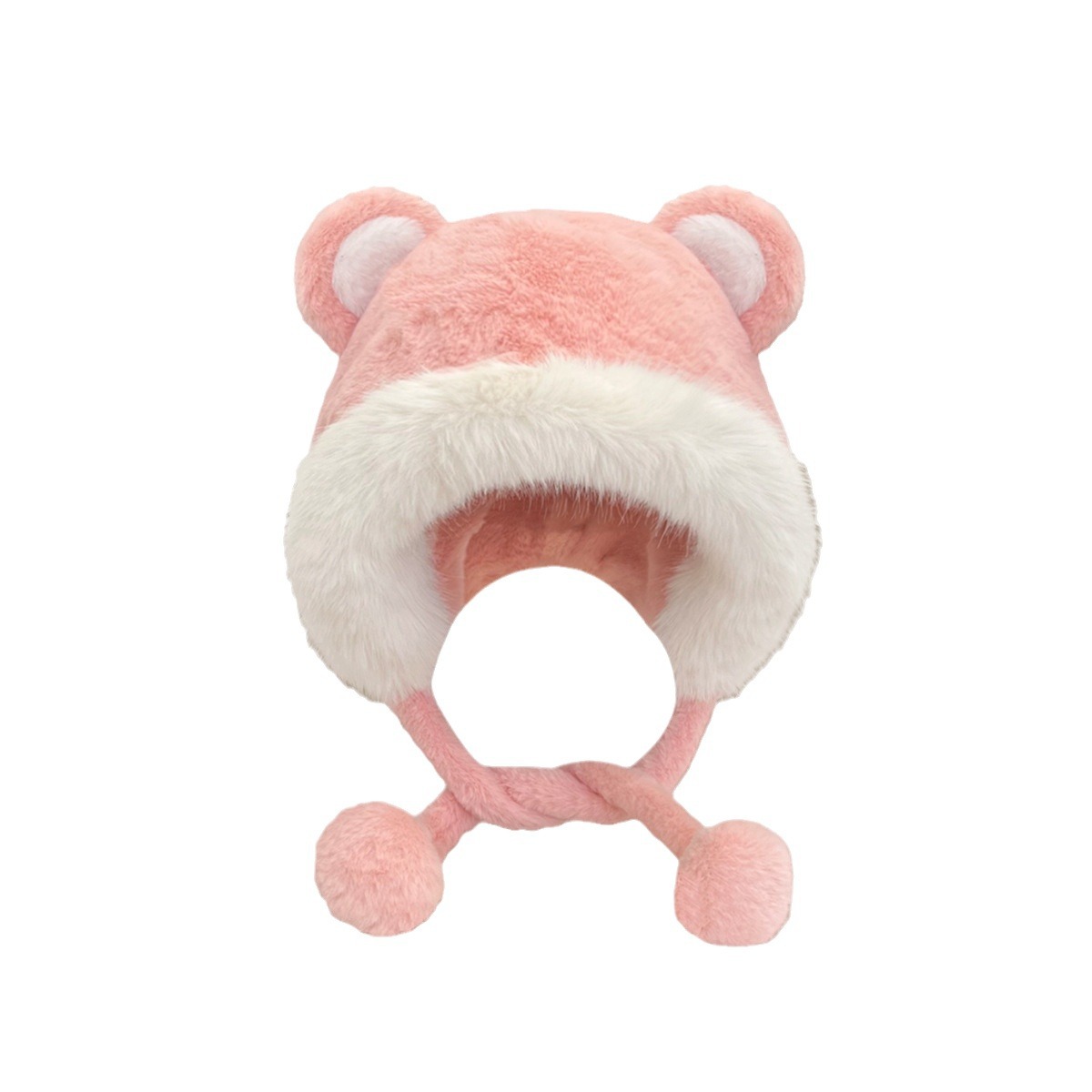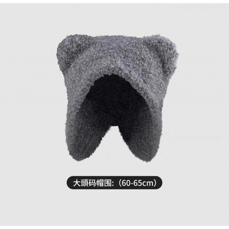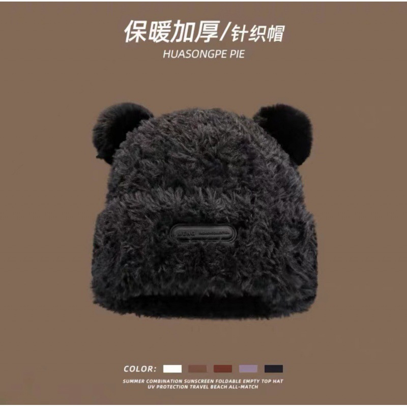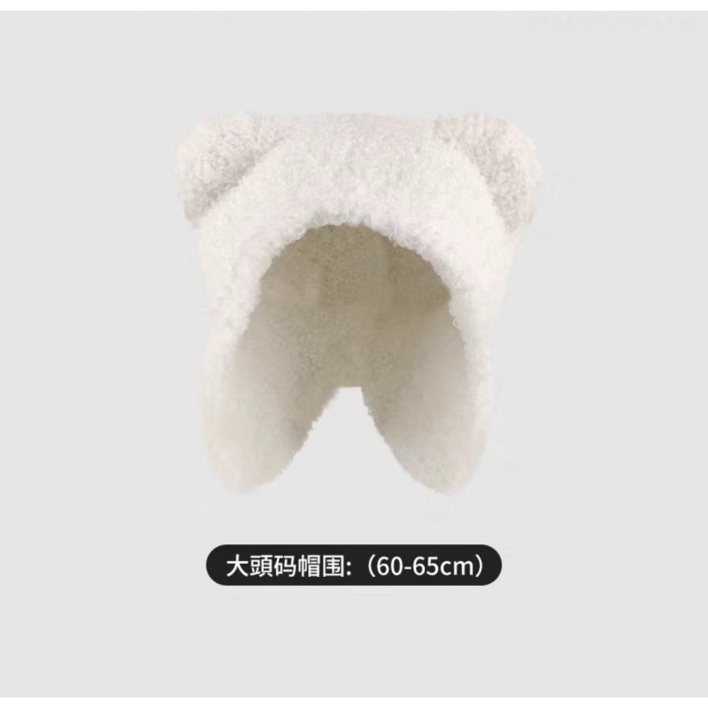 甜美可爱小熊毛绒针织帽子女冬季加厚保暖大头围仿皮草套头护耳帽