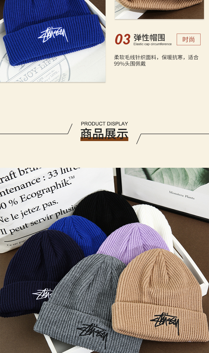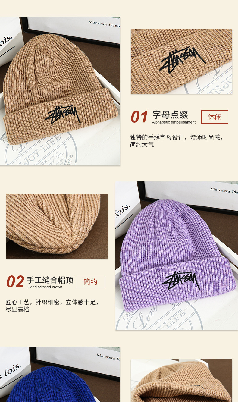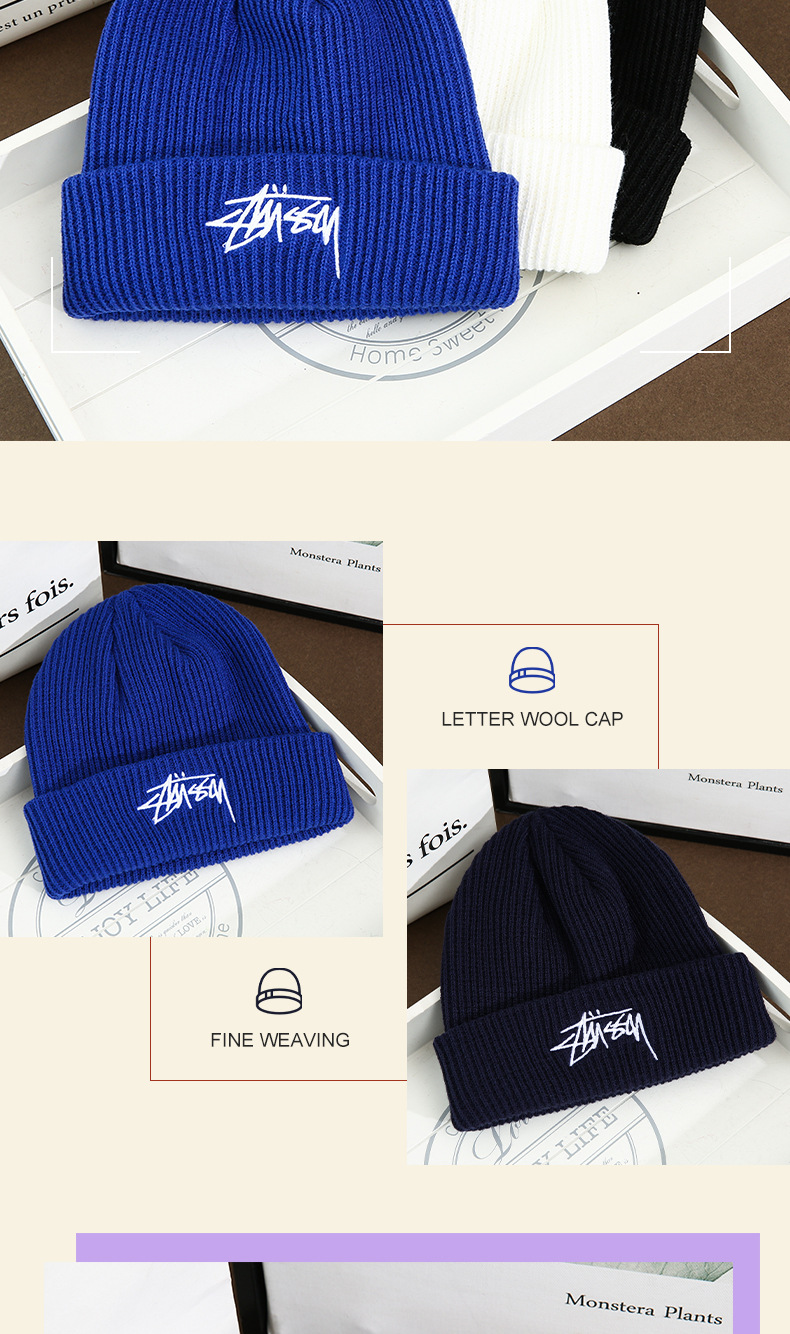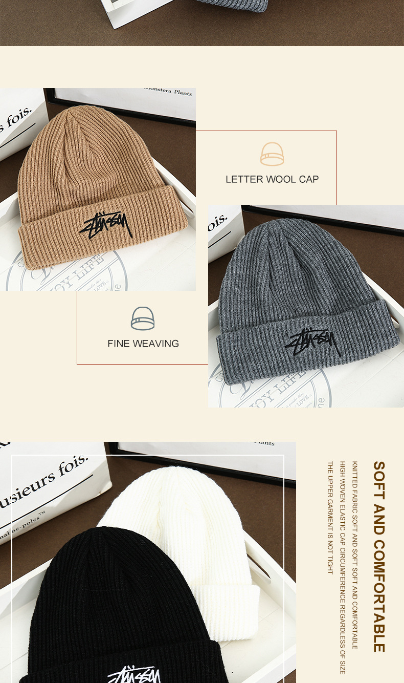跨境帽子 ins风针织帽子秋冬字母保暖针织帽男女通用韩版时尚百搭