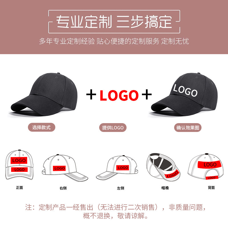 棒球帽刺绣鸭舌帽广告帽LOGO印花纯棉棒球帽男女遮阳批发帽子定制