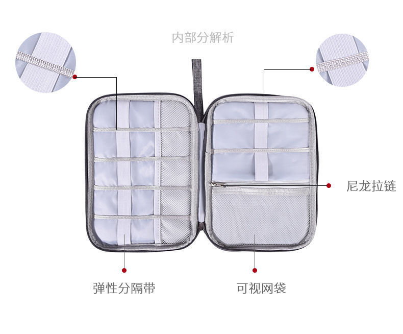 旅行便携防水手提耳机数据线整理收纳包包 电子产品充电线收纳包