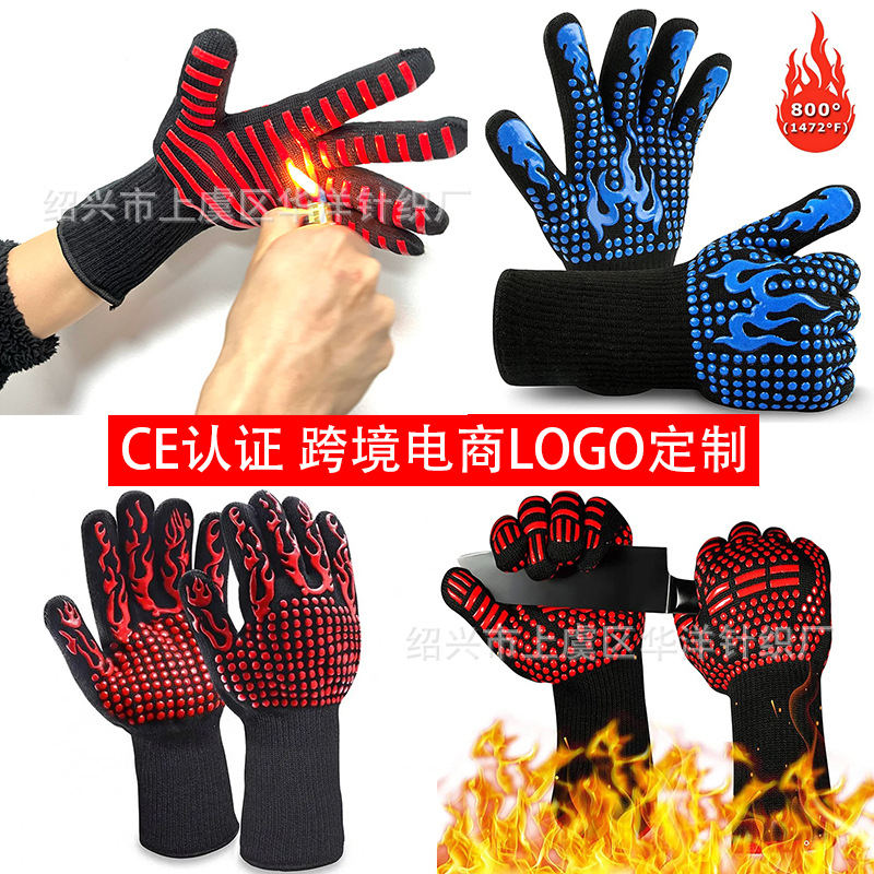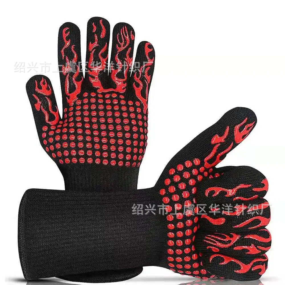 隔热防烫硅胶手套耐高温800度微波炉BBQ烧烤厨房烤肉烤箱高温防护