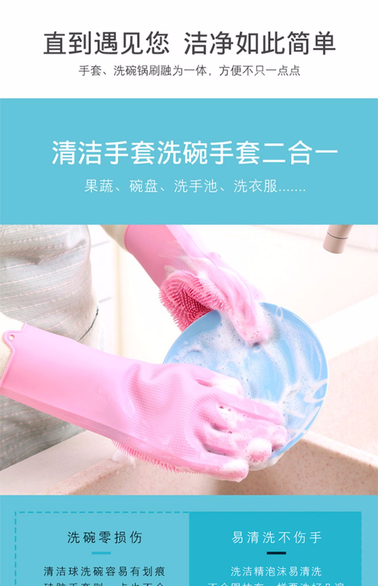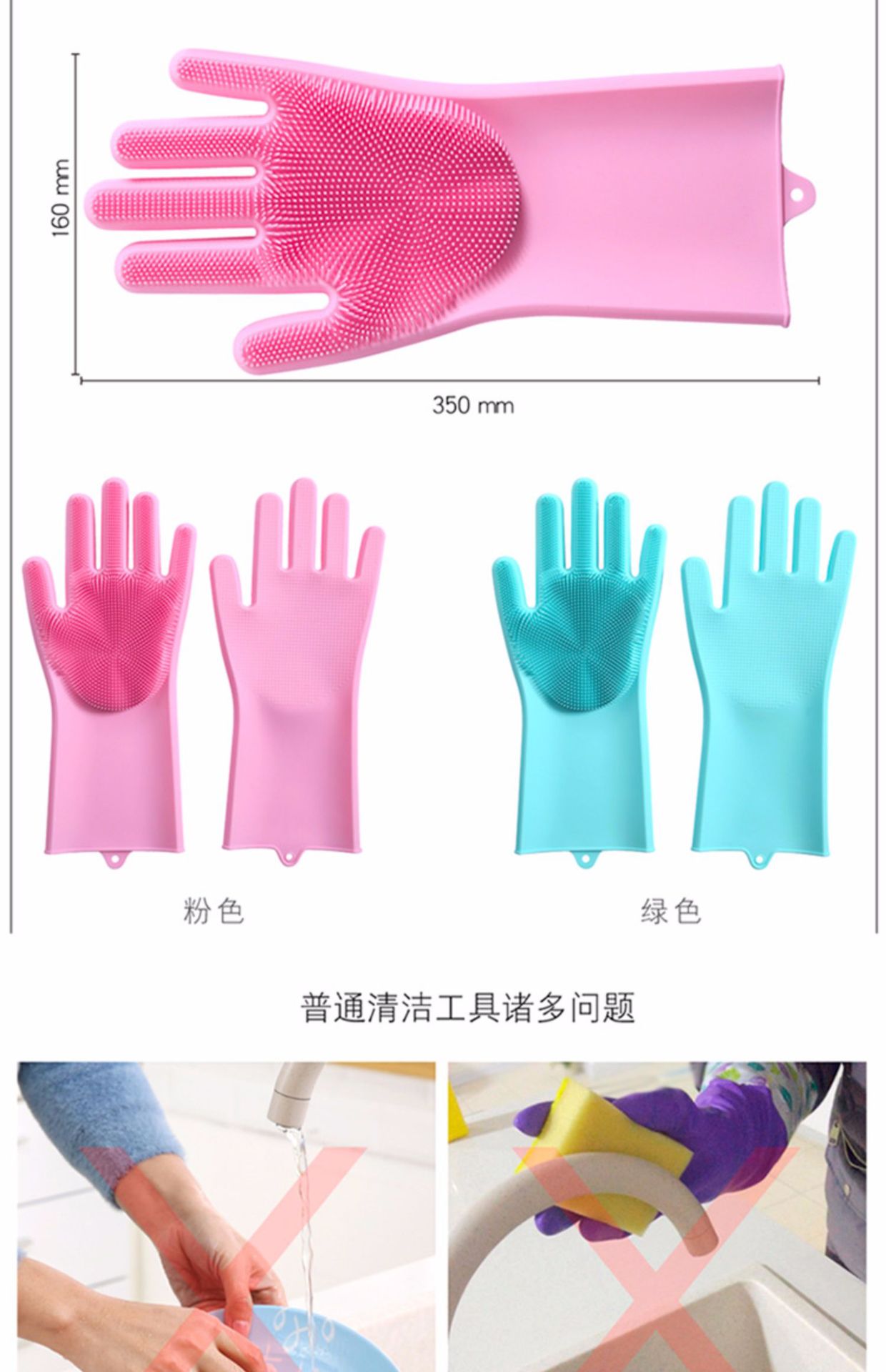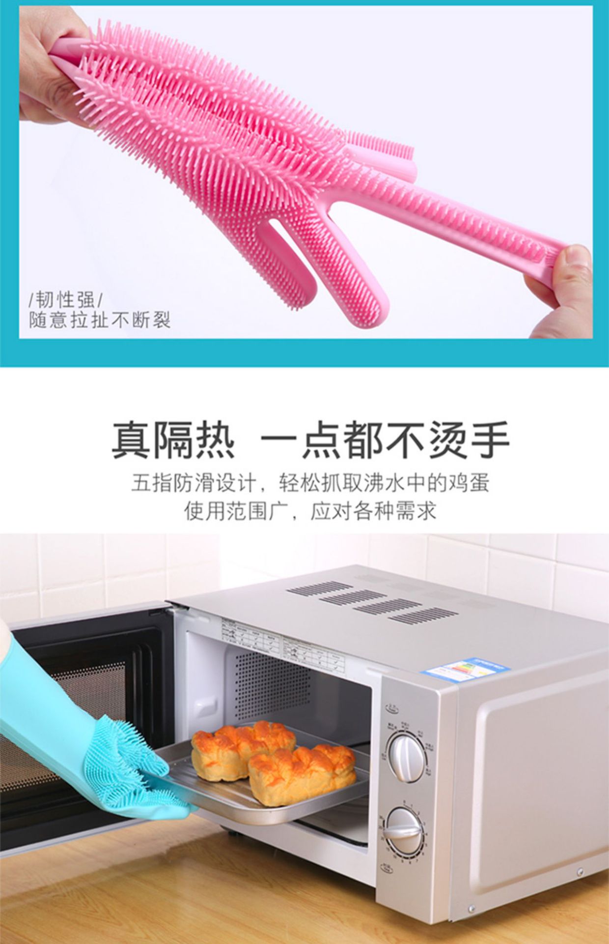 橡胶硅胶洗碗手套耐高温防烫家用硅胶厨房刷碗洗菜宠物洗澡手套
