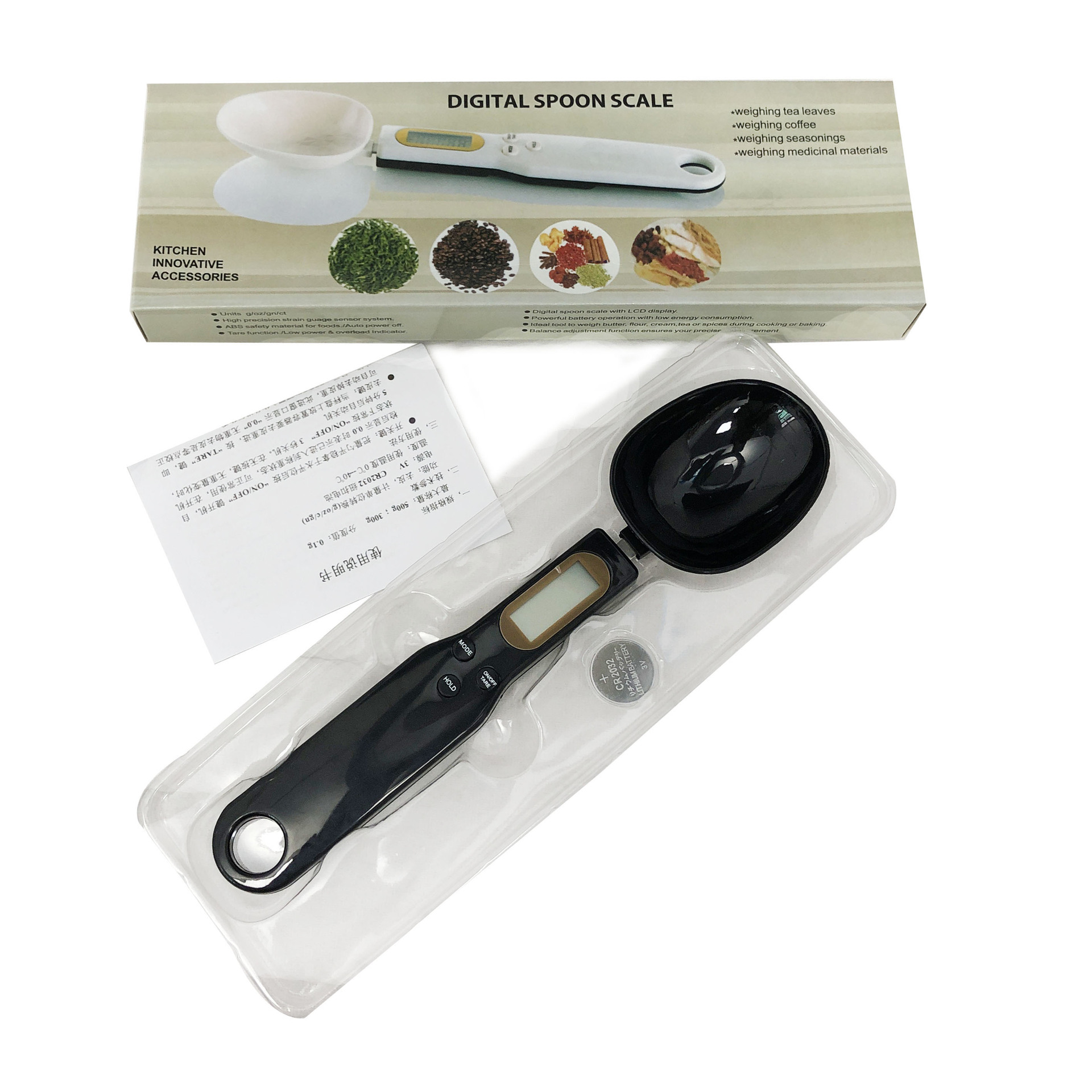 电子厨房称量勺秤手持配料秤500g0.1g称重量勺秤狗粮秤家用勺子秤