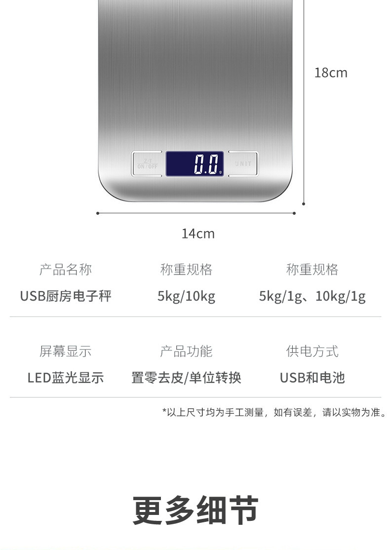 烘焙电子称食物品小型咖啡家用厨房秤不锈钢精准克重数秤电子量勺