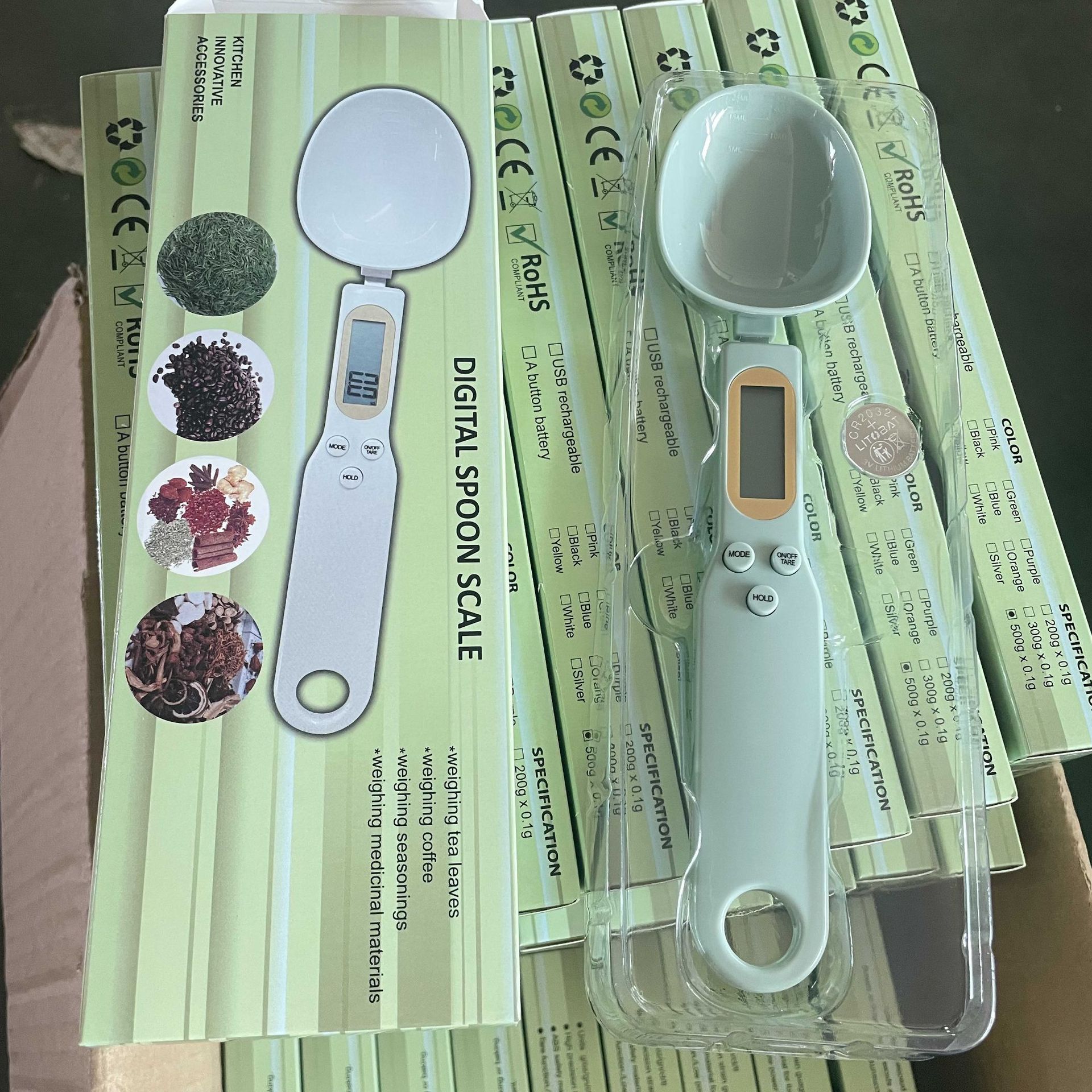 跨境热卖电子秤0.1g手持称重秤美式食物克称家用厨房秤量勺秤批发