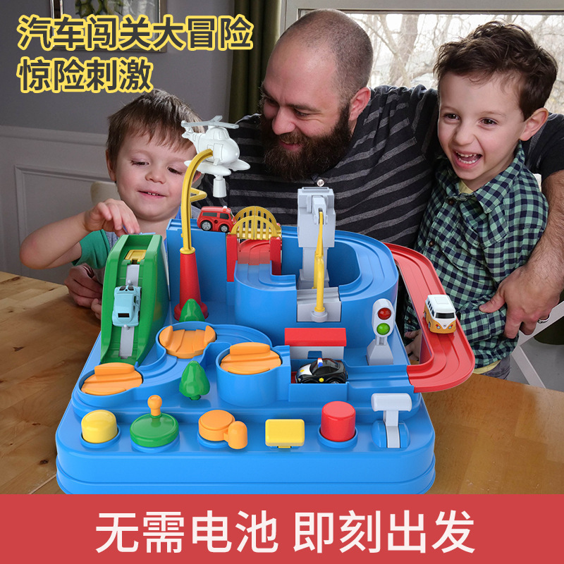 汽车闯关大冒险儿童托马斯小火车轨道大冒险停车场益智玩具跨境