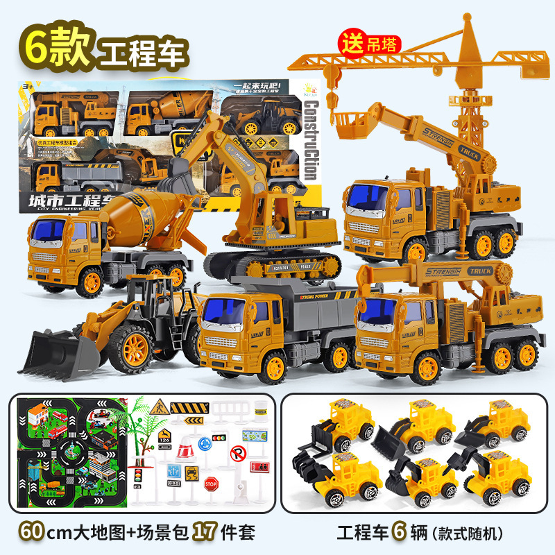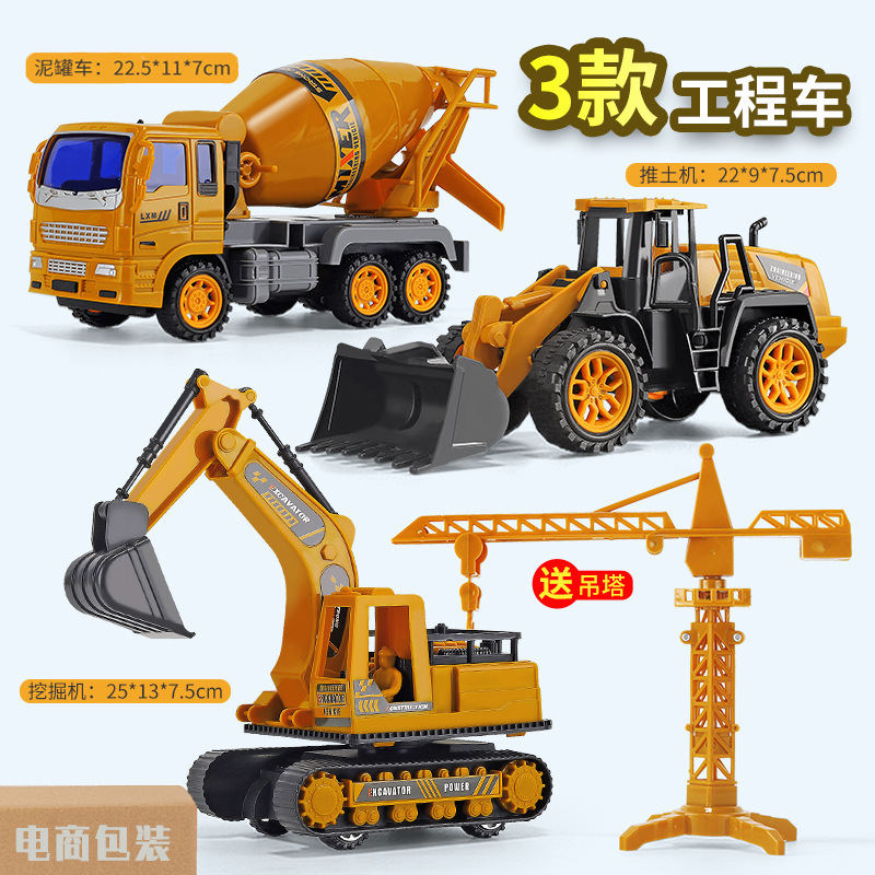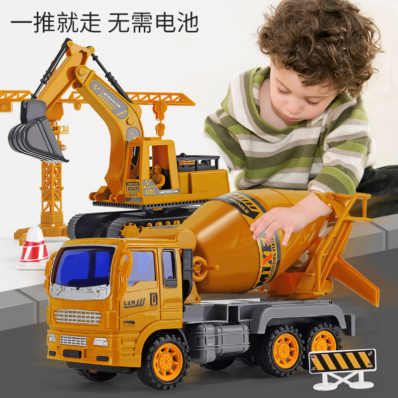 大号工程车小孩玩具套装滑行惯性车搅拌翻斗吊车挖掘机礼盒装包邮
