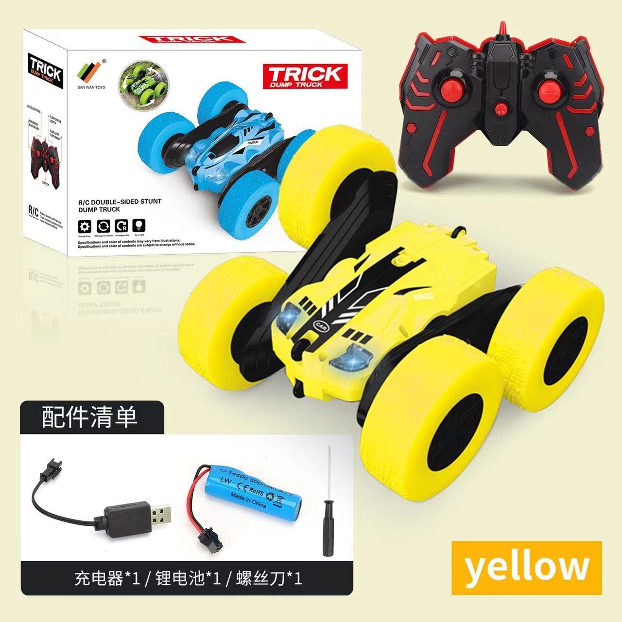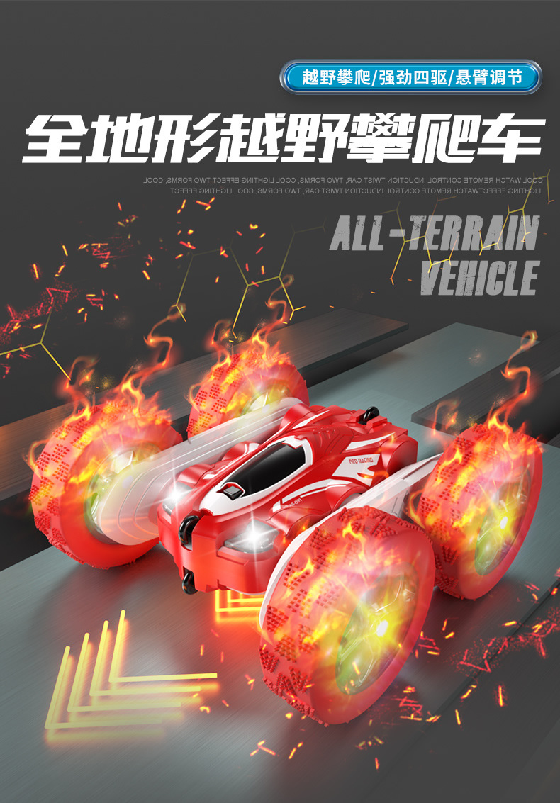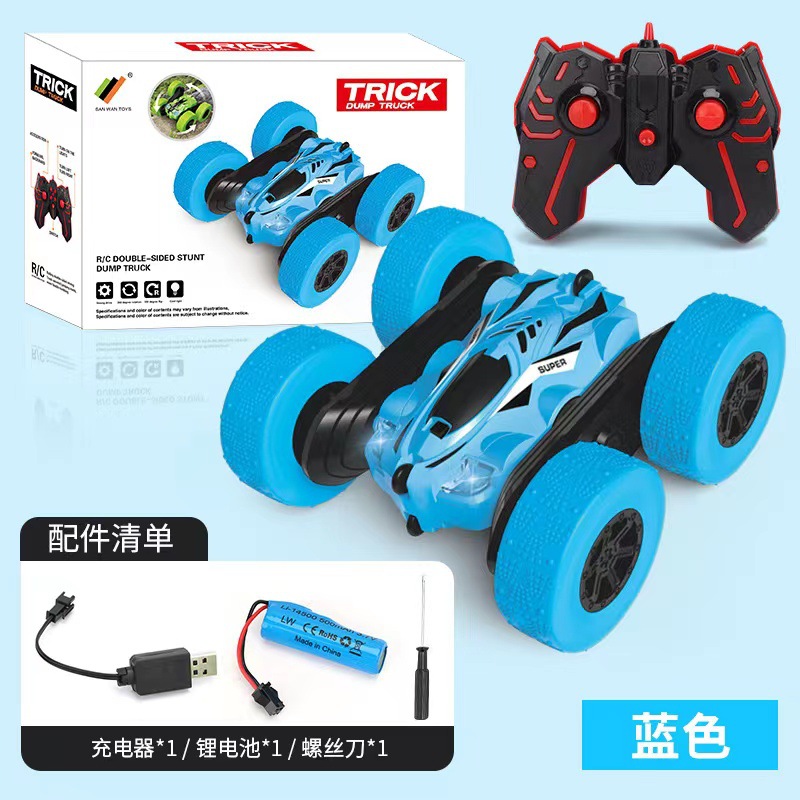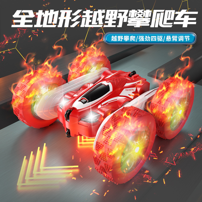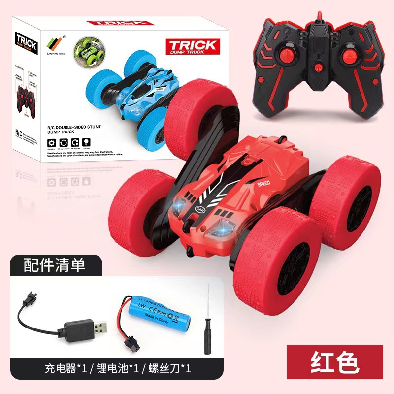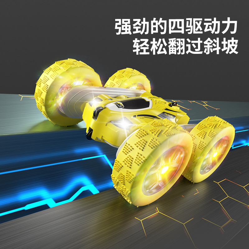 跨境儿童遥控2.4G四驱特技双面车耐摔干扰变形翻斗车玩具厂家直销
