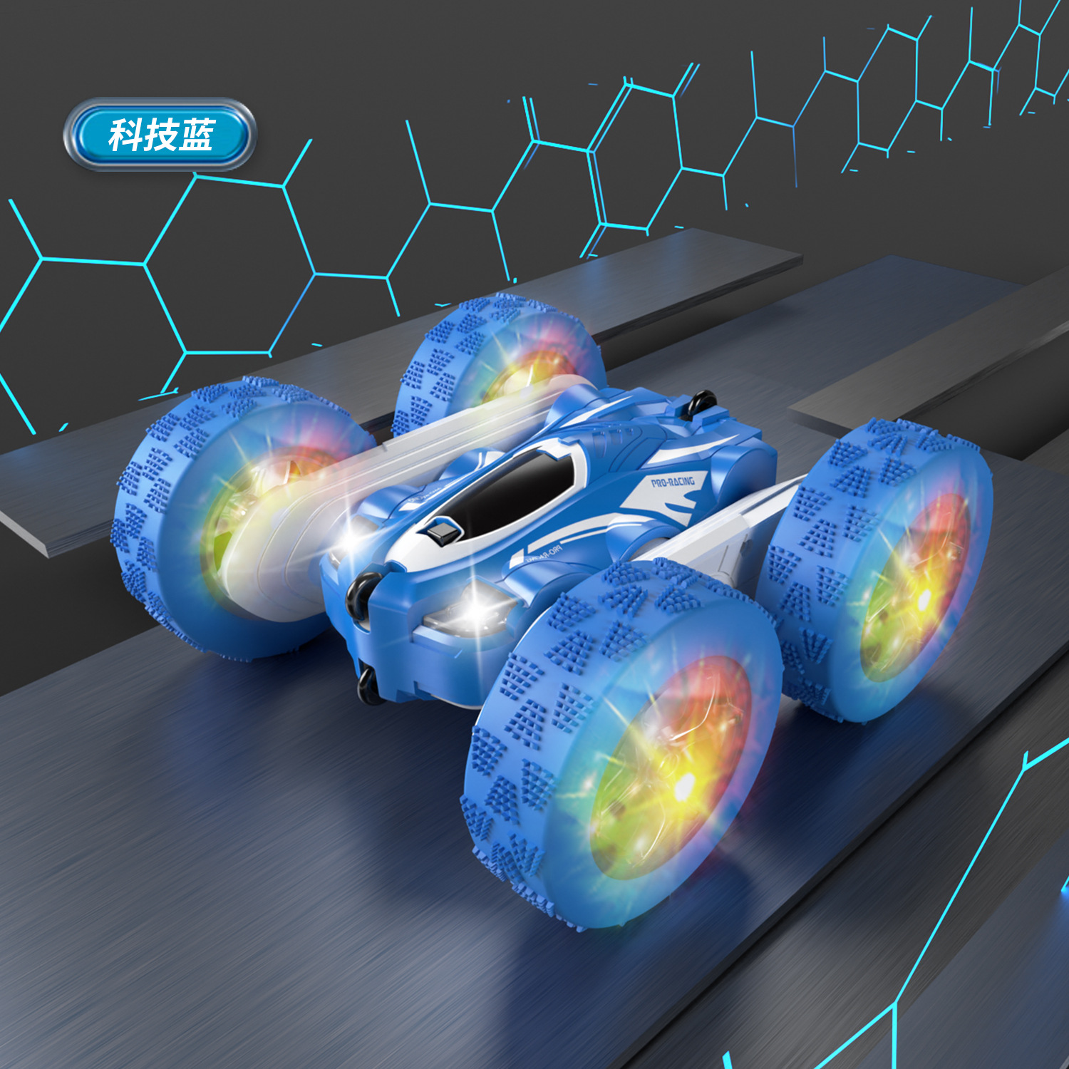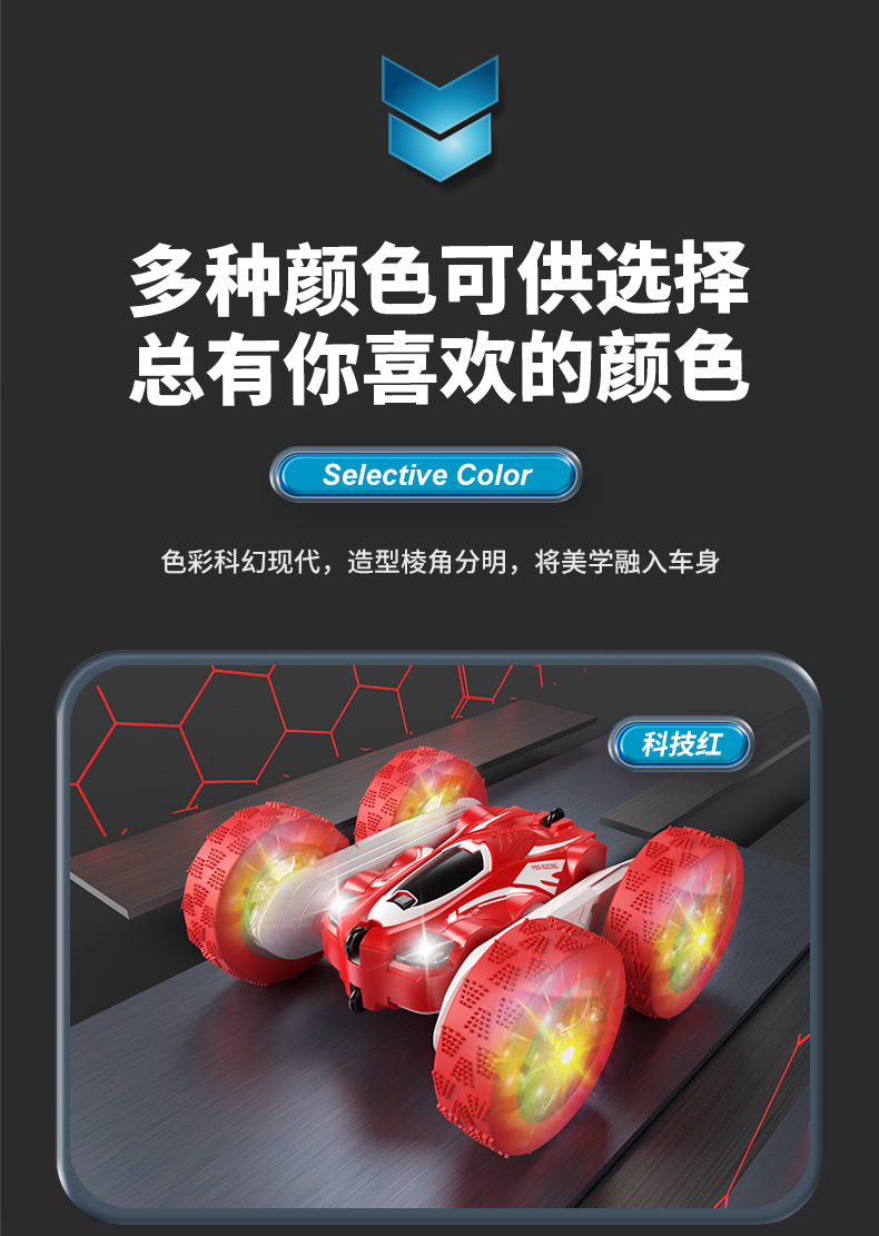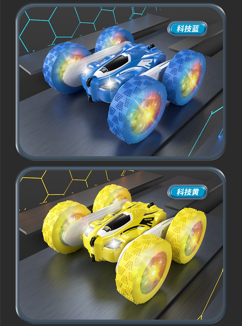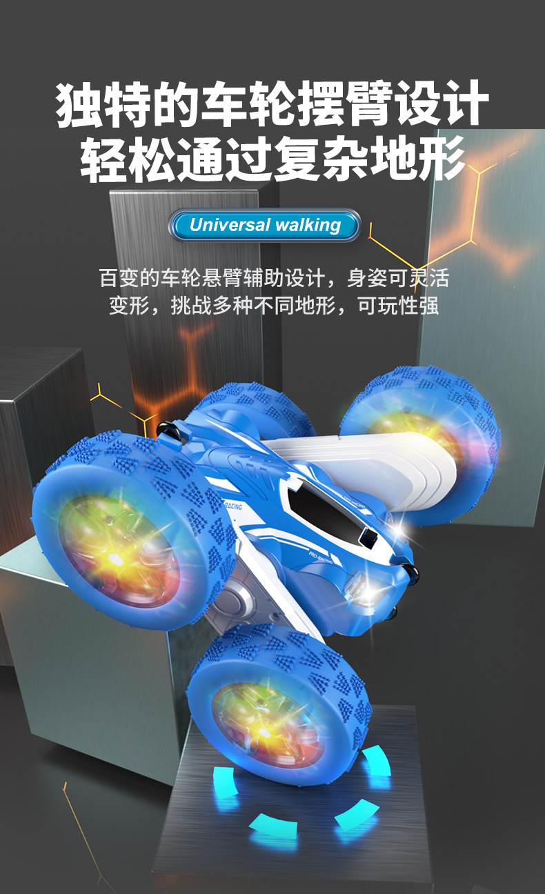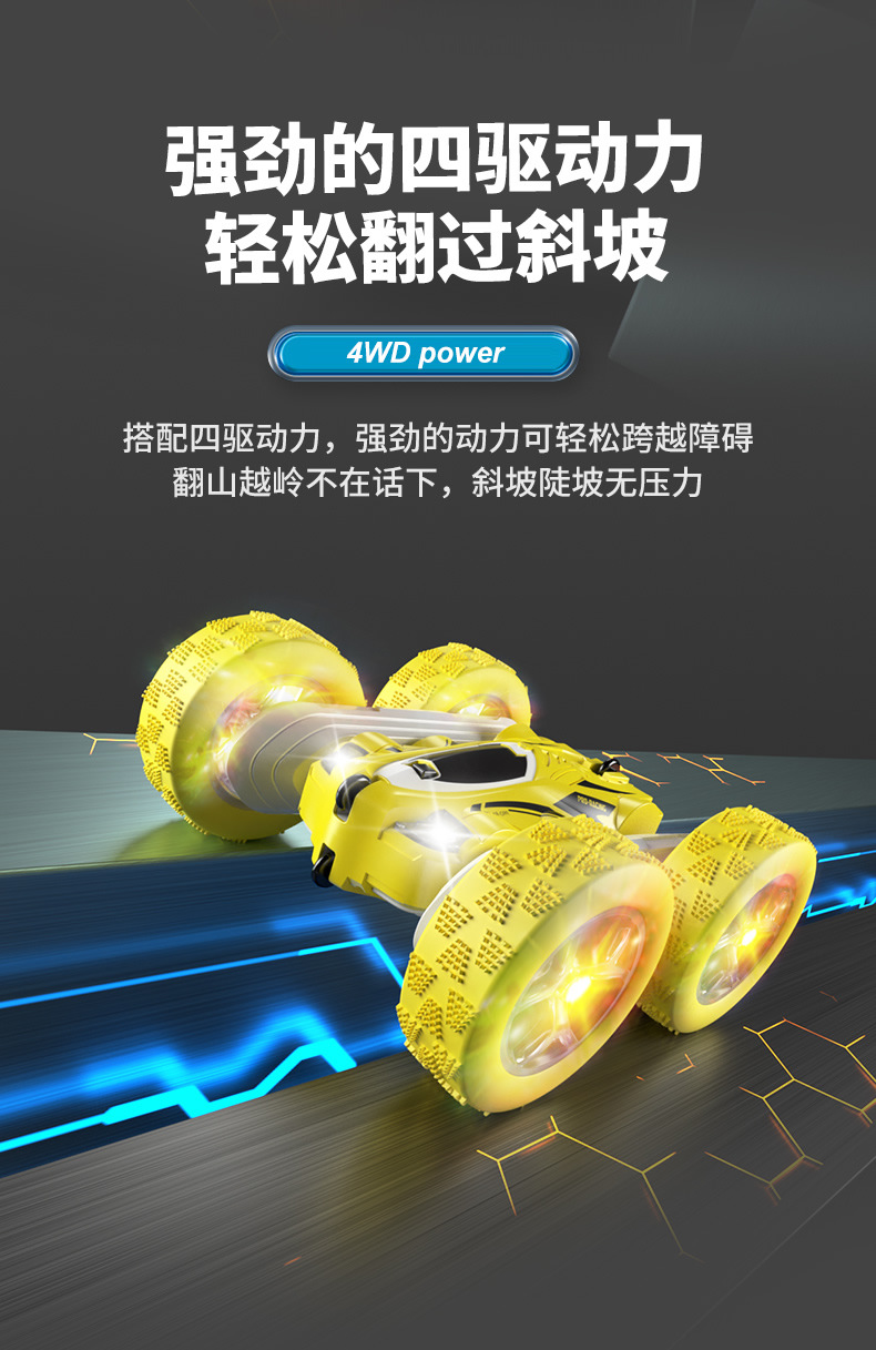 跨境儿童遥控2.4G四驱特技双面车耐摔干扰变形翻斗车玩具厂家直销