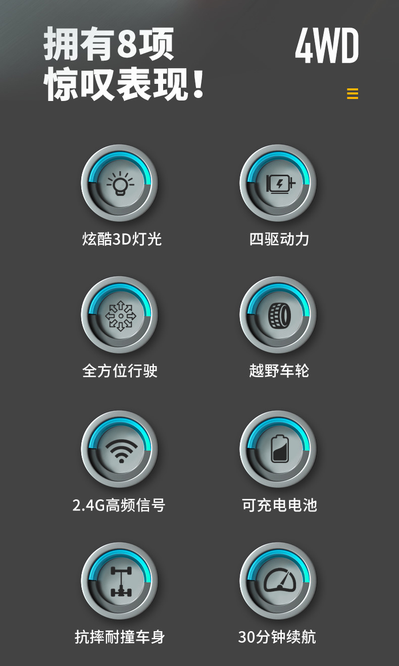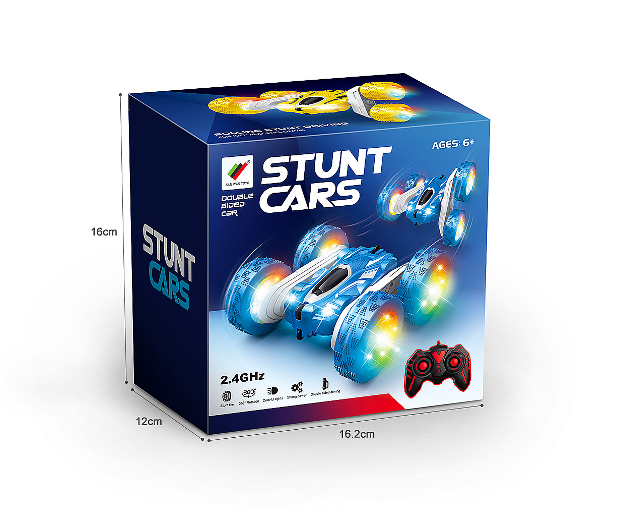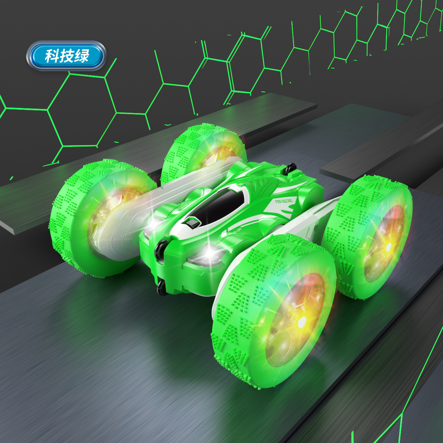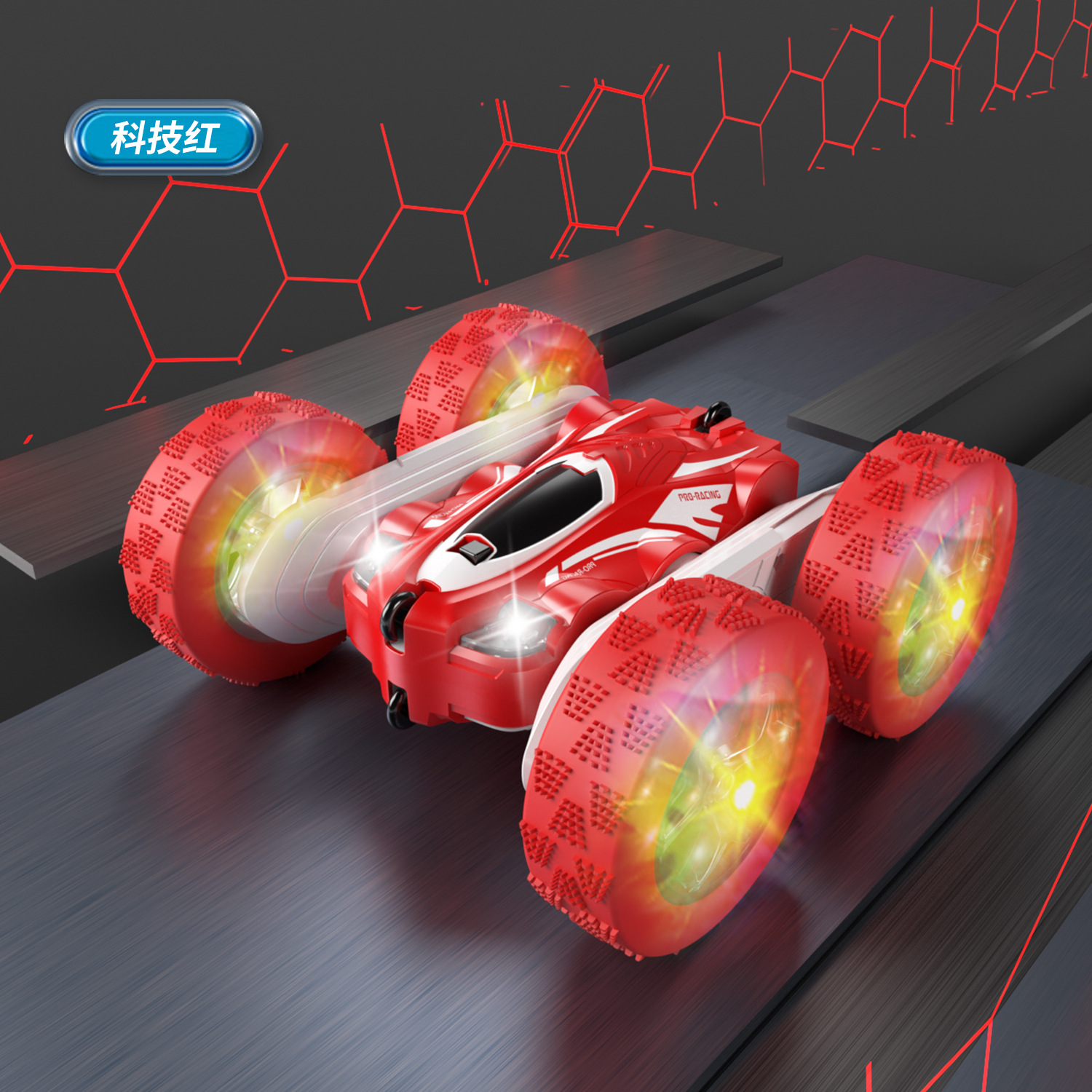 跨境儿童遥控2.4G四驱特技双面车耐摔干扰变形翻斗车玩具厂家直销