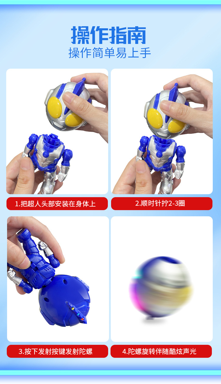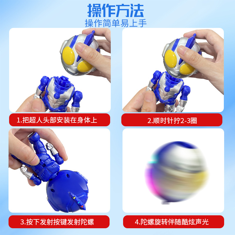 正版新品超人变形侠陀螺炫酷七彩灯光发光声节日礼物男孩儿童玩具