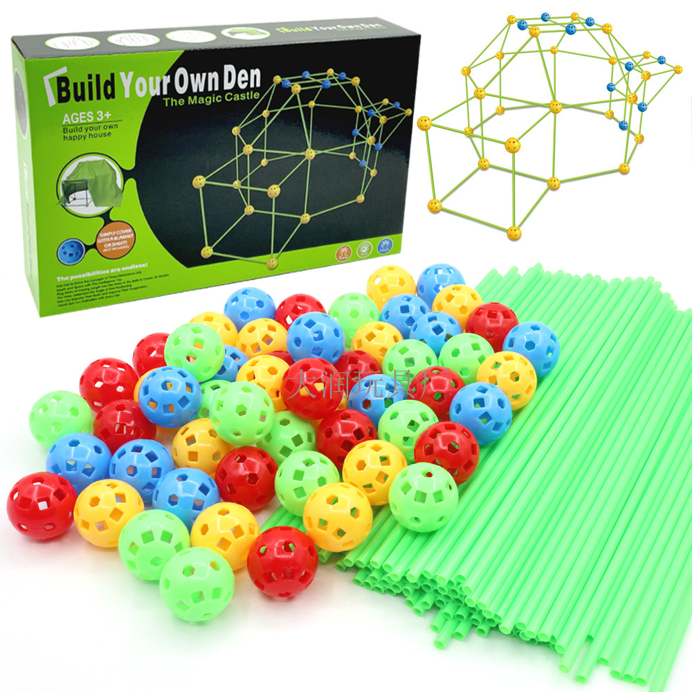 跨境儿童DIY插珠帐篷fort building kit 建筑游戏屋室内拼插积木
