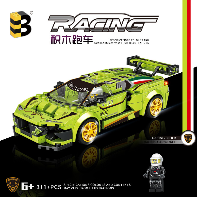 兼容乐高积木绿牛跑车儿童益智小颗粒拼装男孩礼物玩具实体店批发