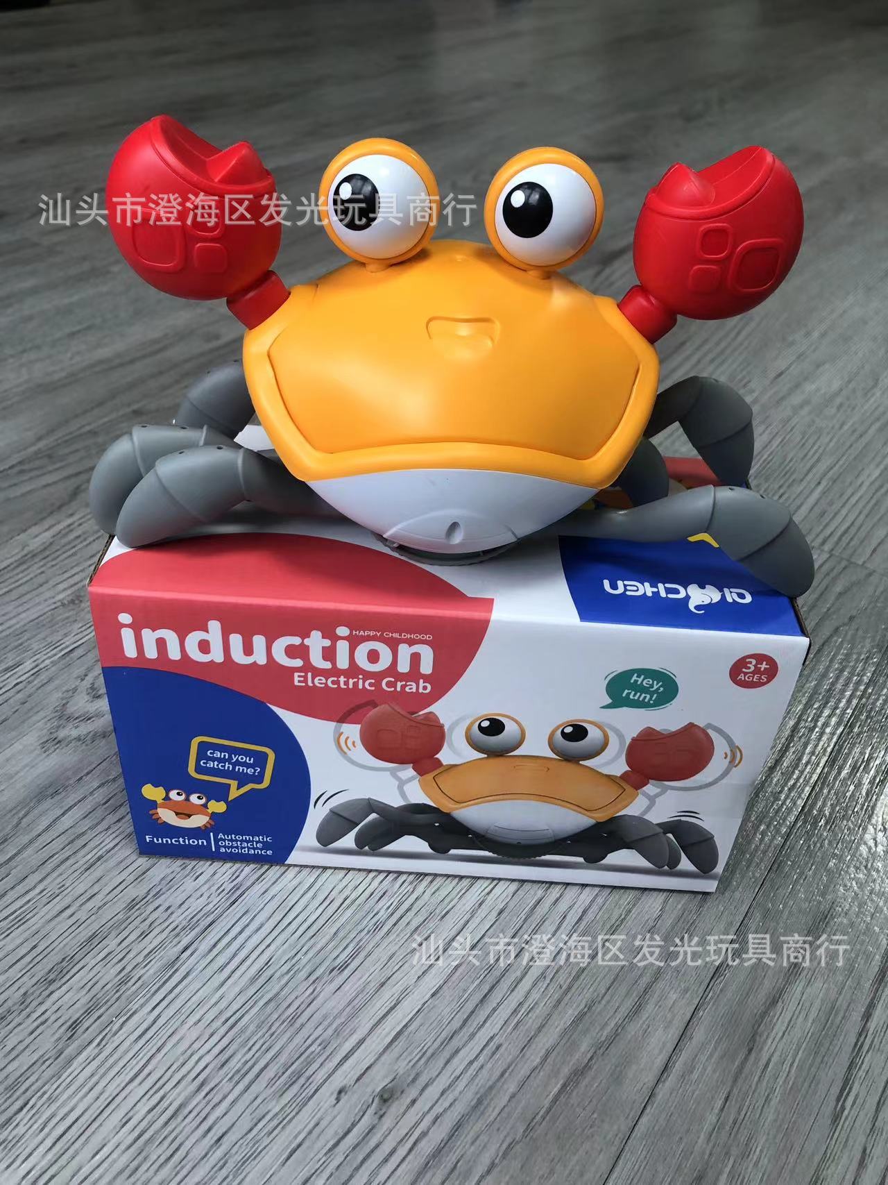 跨境电动声光发光玩具自动感应螃蟹可充电爬行螃蟹儿童益智玩具