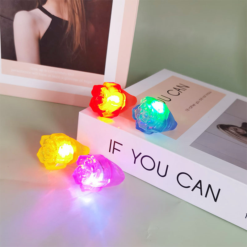 跨境爆款亚马逊发光戒指 LED闪光戒指草莓爱心玫瑰软胶戒指玩具