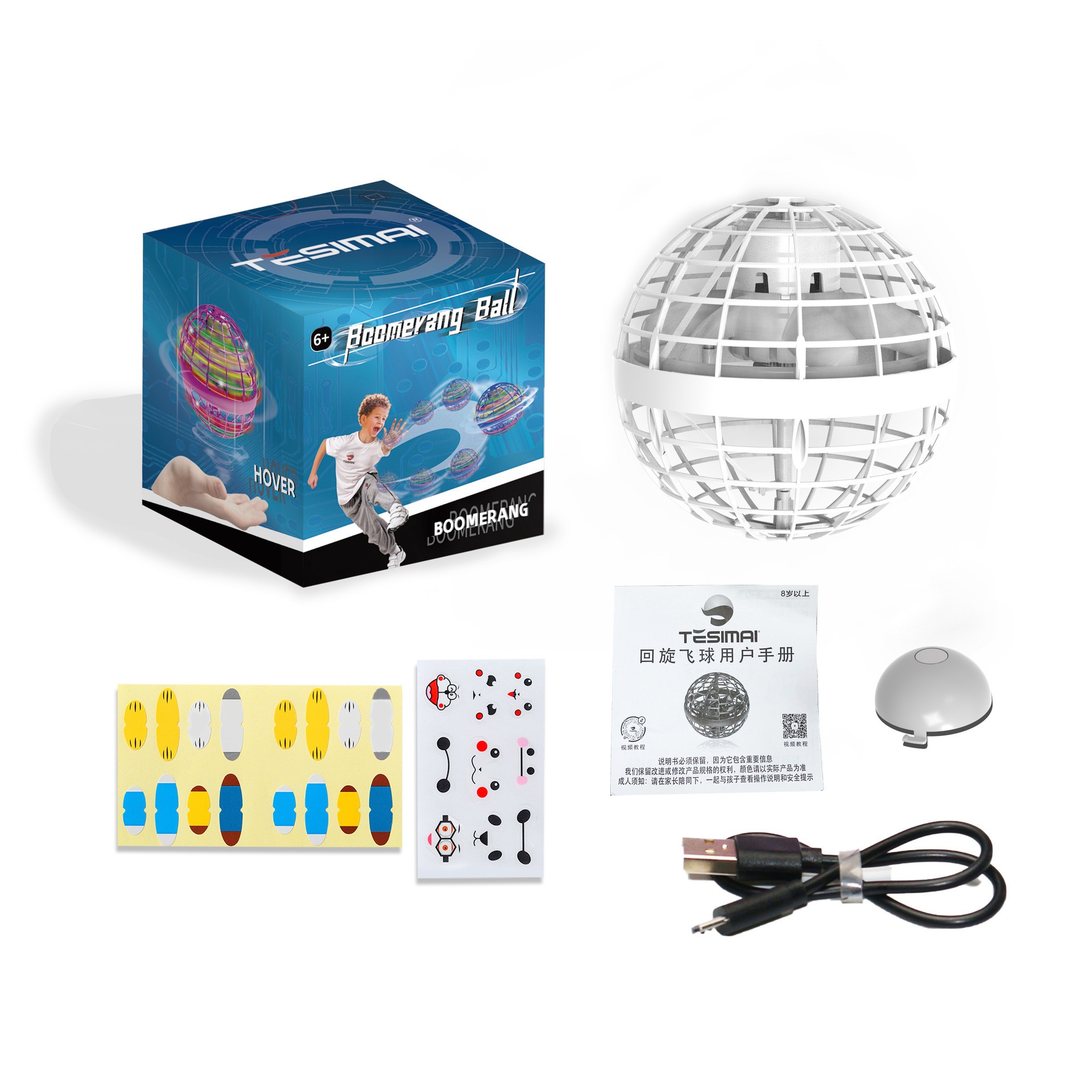 圣诞礼品回旋飞球DIY悬浮发光节日玩具感应魔术陀螺互动解压飞球