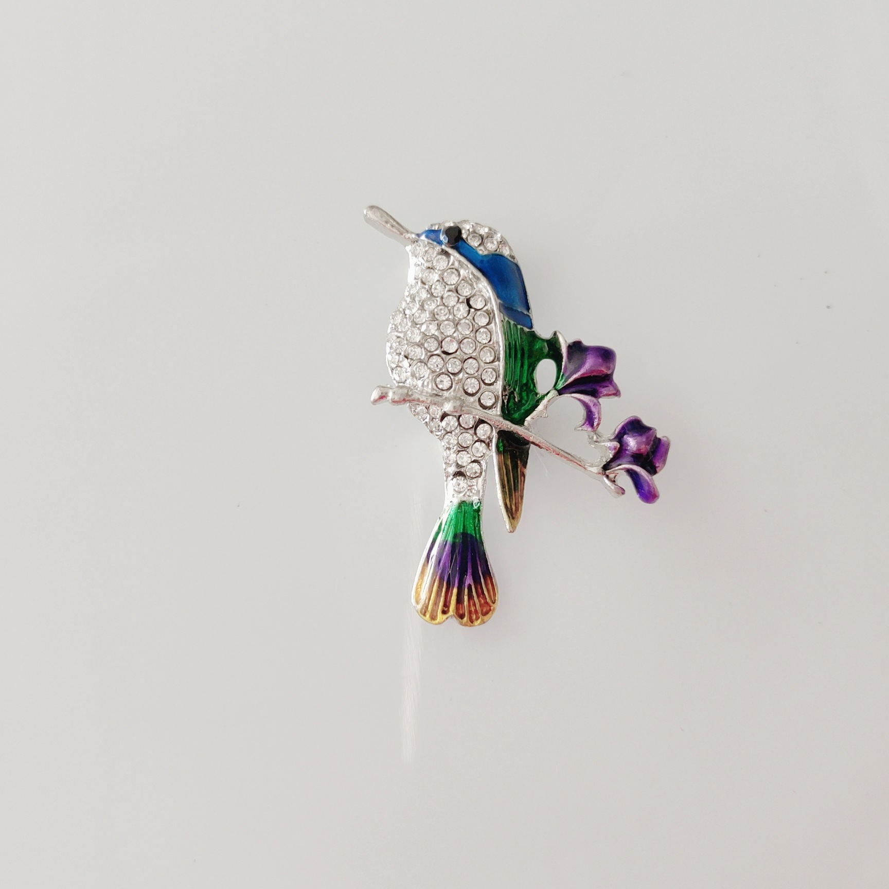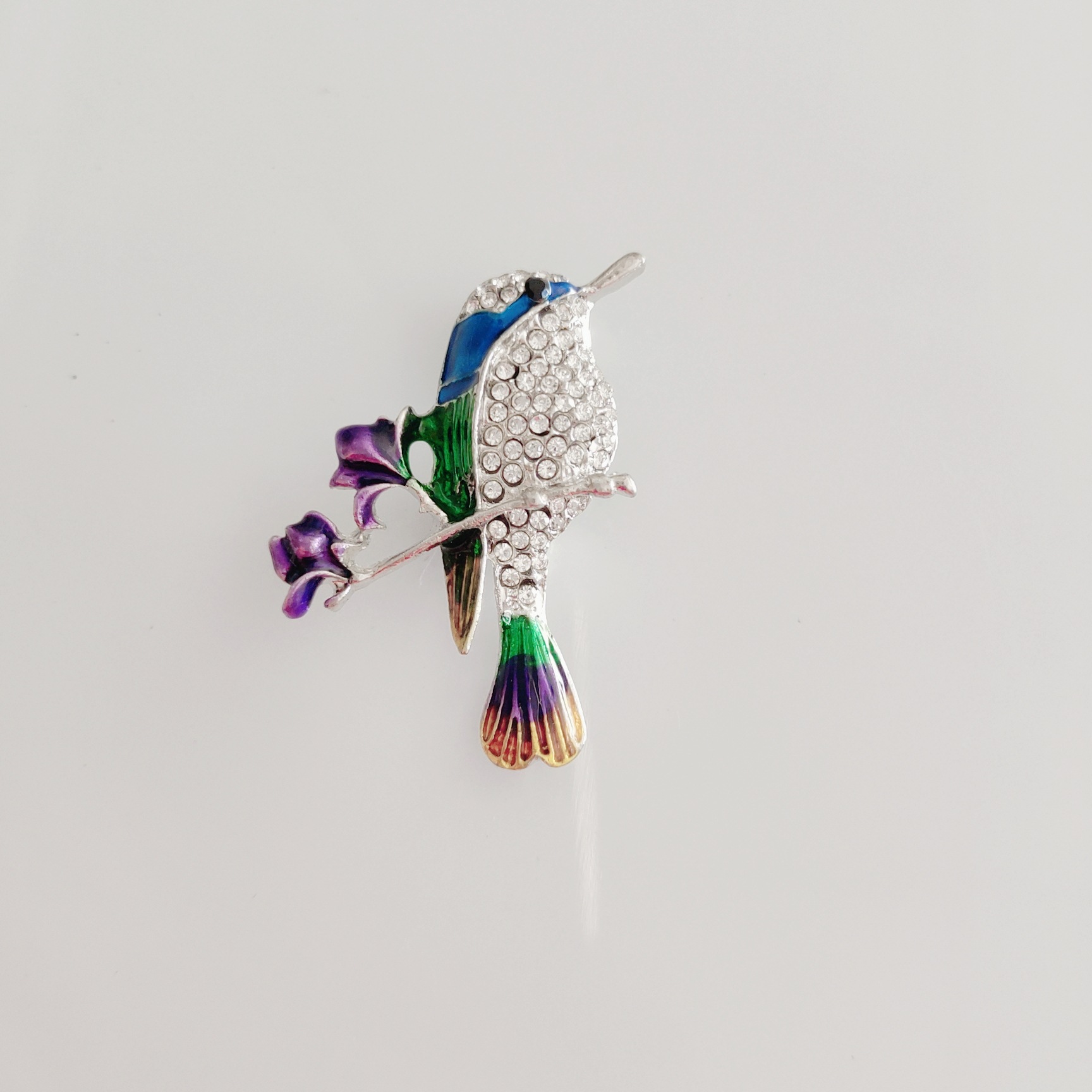 跨境红玫瑰喜鹊珐琅合金胸针设计款水晶小鸟胸花外套装饰别针批发