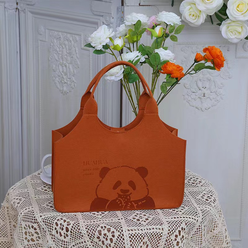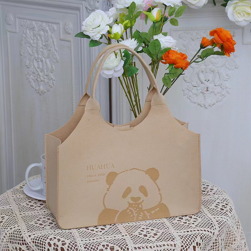 手提毛毡包小熊猫女士托特包单肩时尚百搭手提袋礼品伴手礼袋