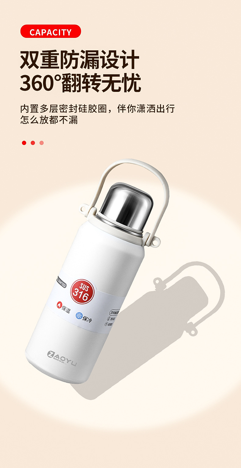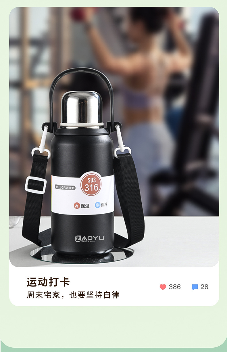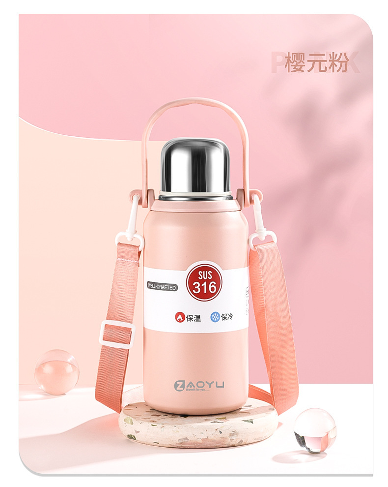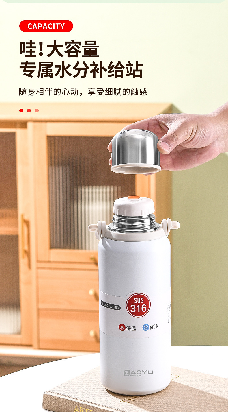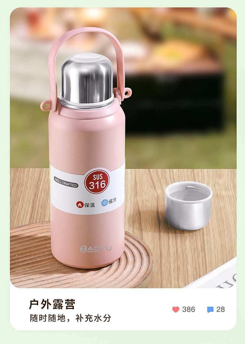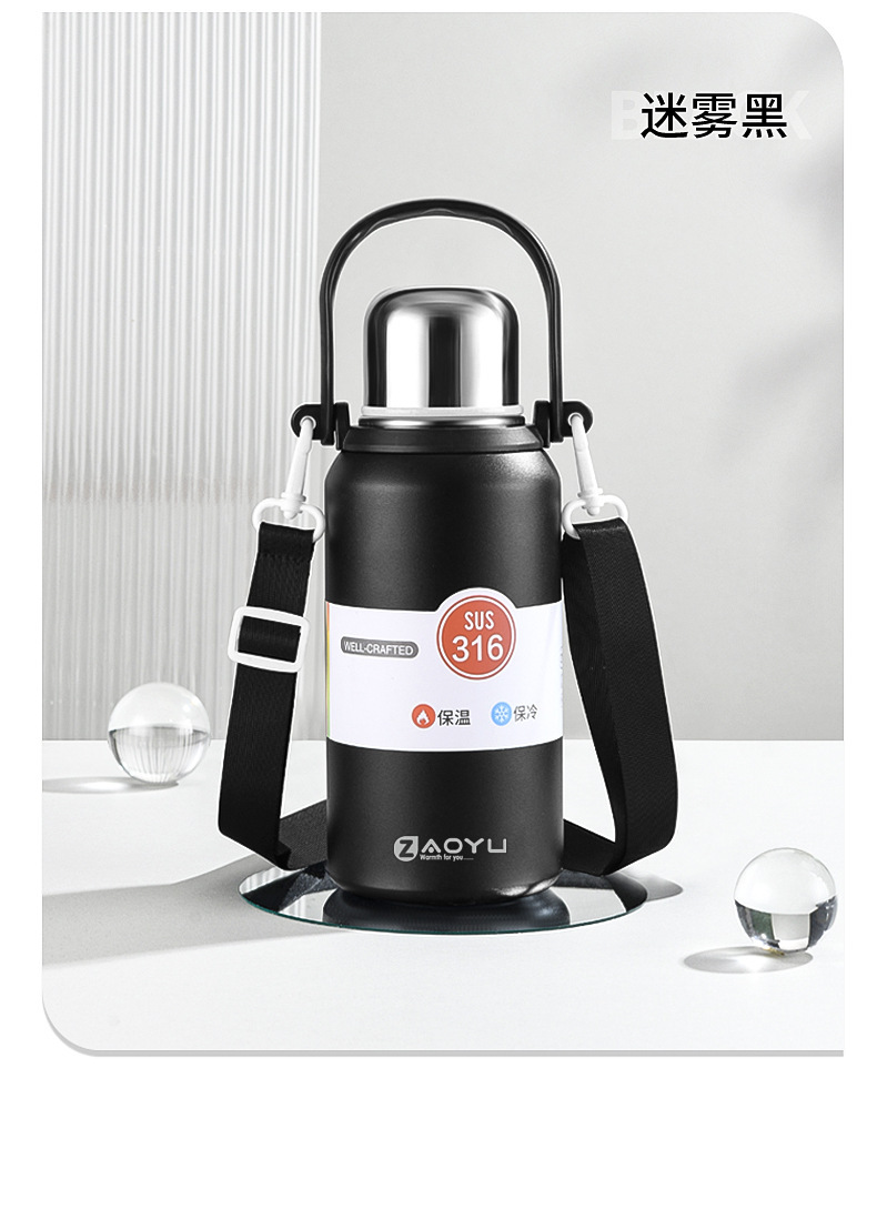 外贸新款316保温杯大容量不锈钢水杯便携运动水壶户外车载手提壶