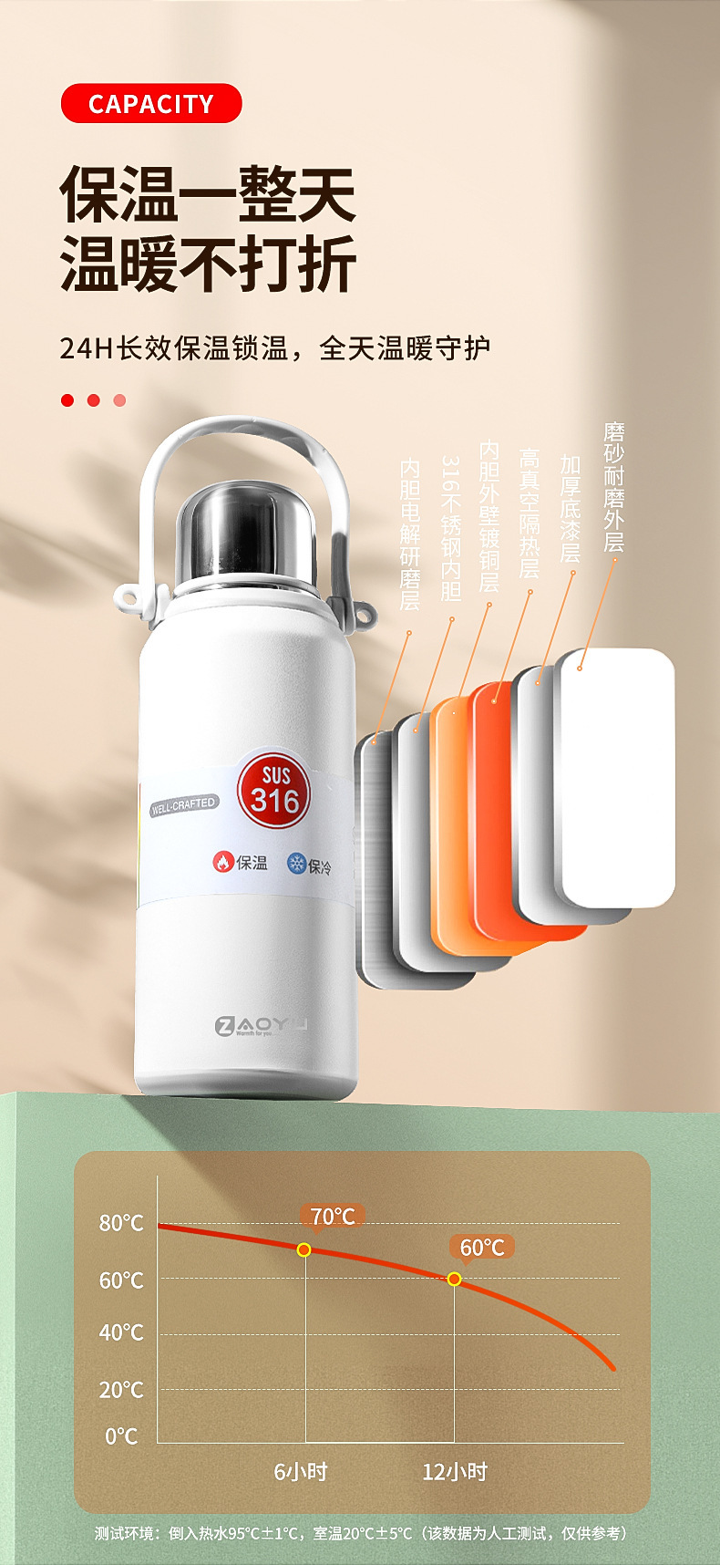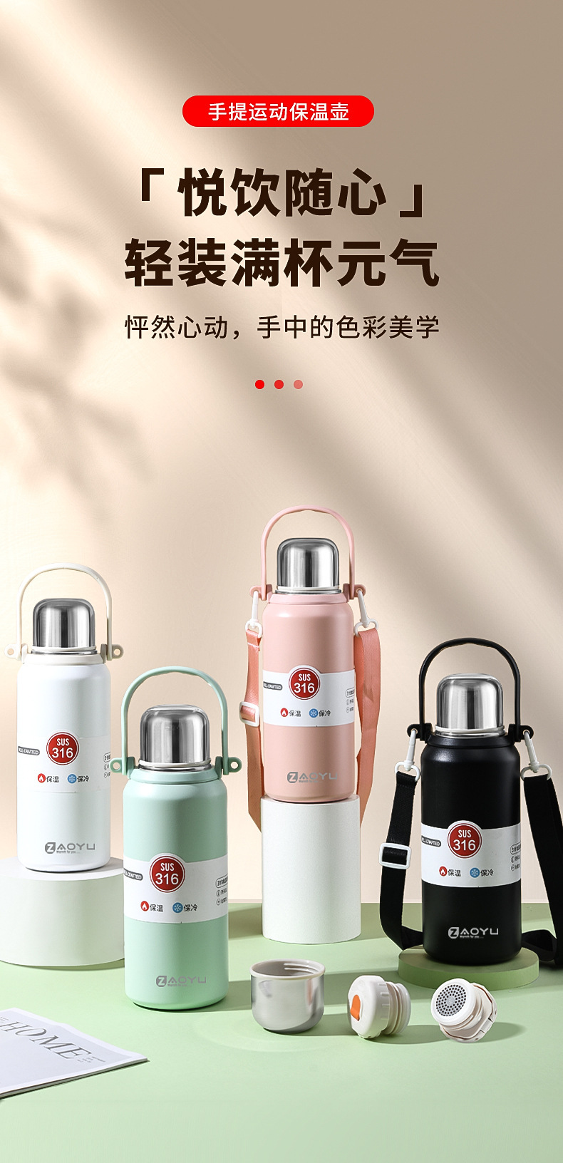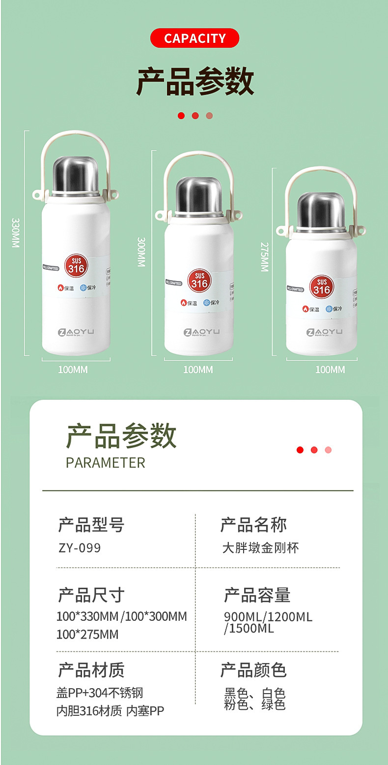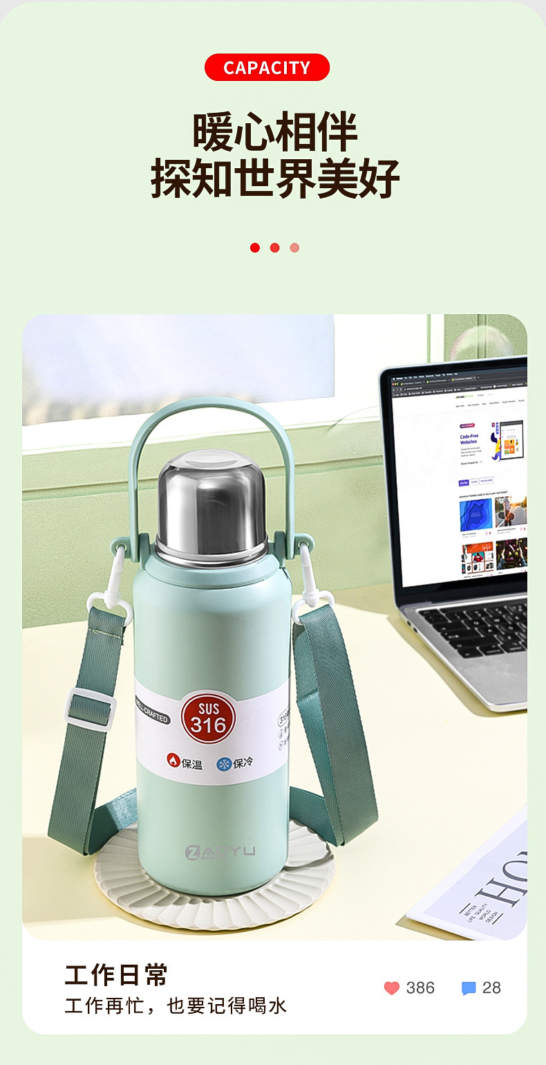 外贸新款316保温杯大容量不锈钢水杯便携运动水壶户外车载手提壶