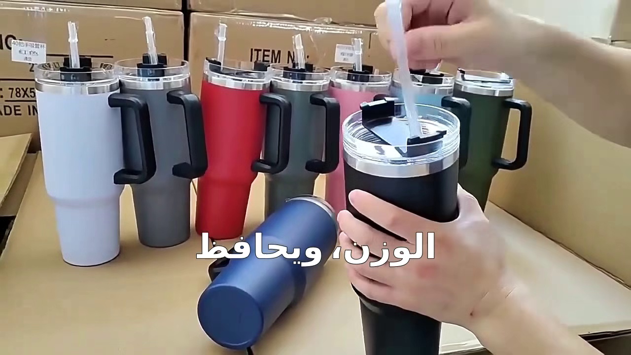 不锈钢保温杯40OZ带手柄吸管冰霸杯户外车载大容量汽车杯