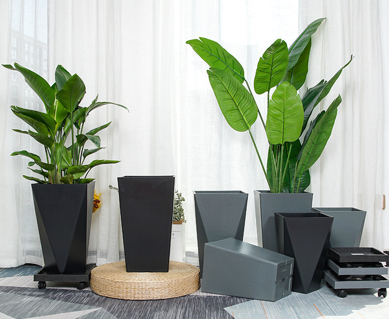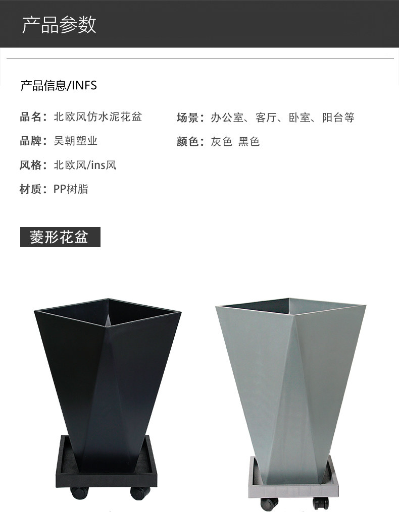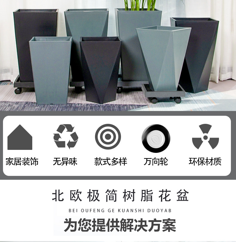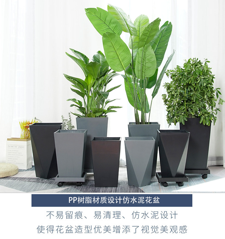 北欧仿水泥花盆 大口径长方形落地盆客厅绿植散尾葵天堂鸟树脂盆