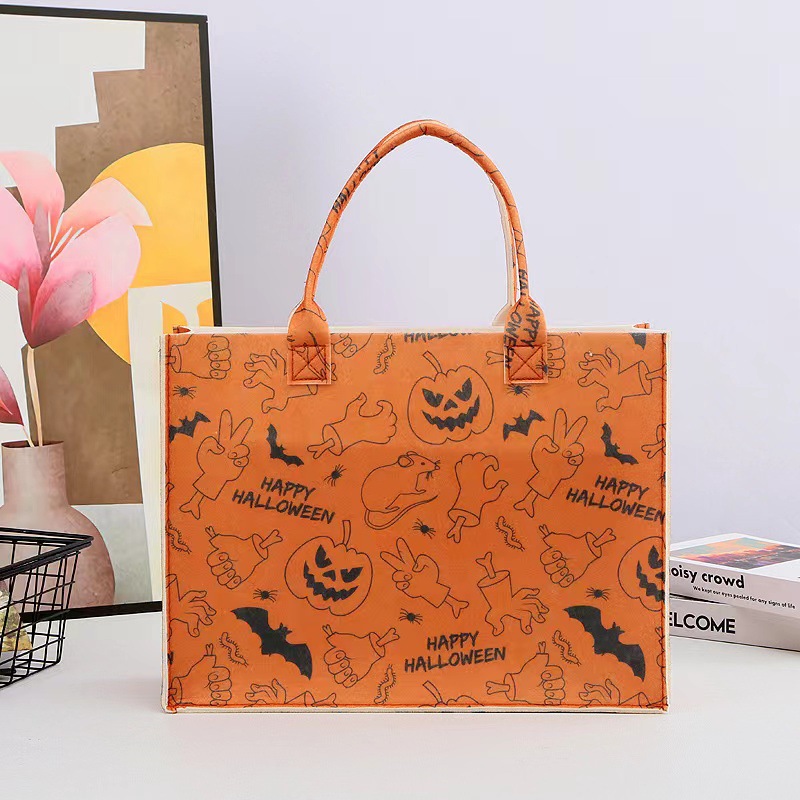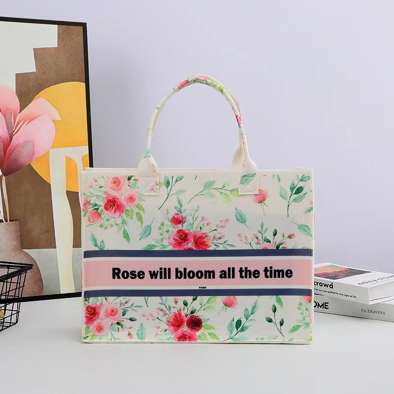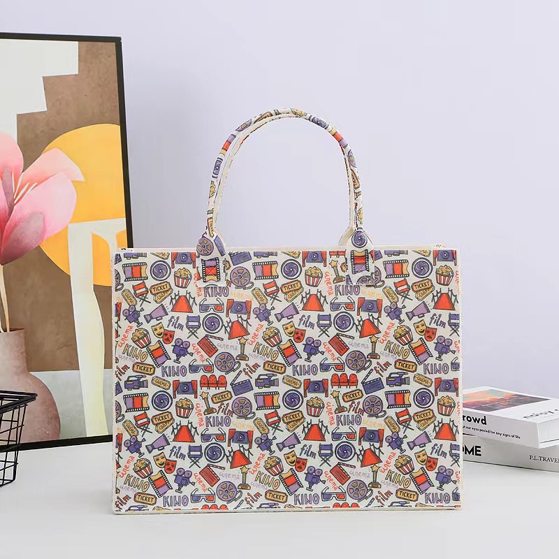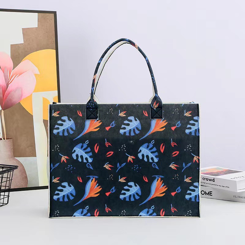 2023新款全色印花毛毡包单肩复古蓝色手提袋大容量百搭托特包韩系
