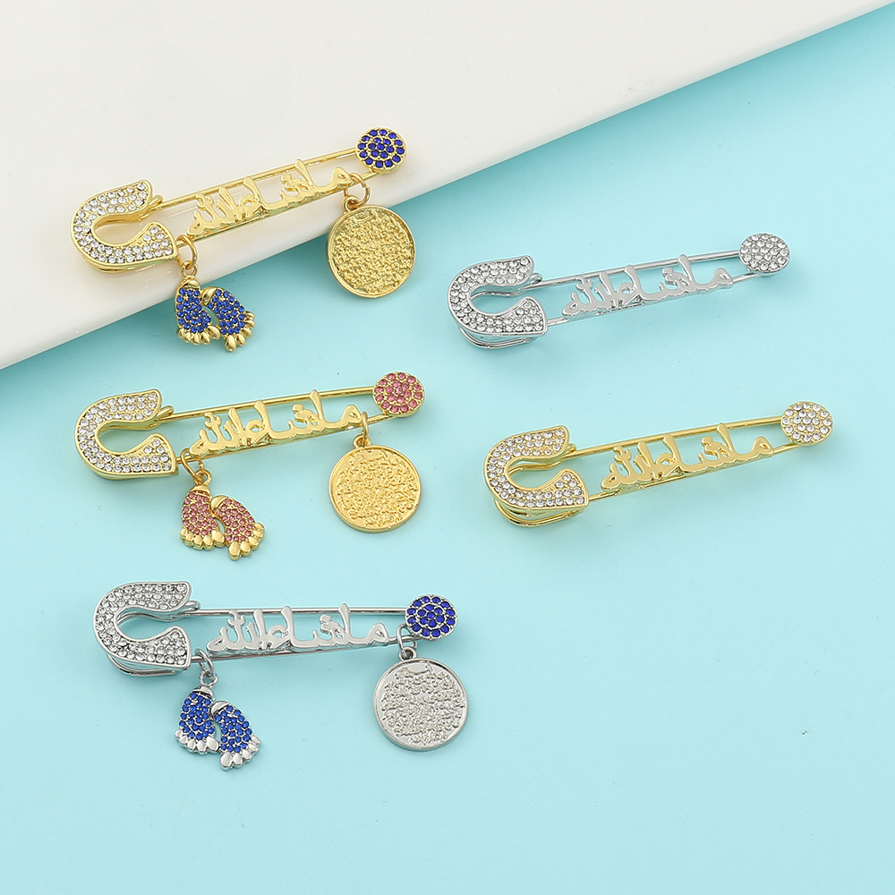 跨境爆款满钻脚丫字母金属胸针高级精致个性别针服装饰品别针批发