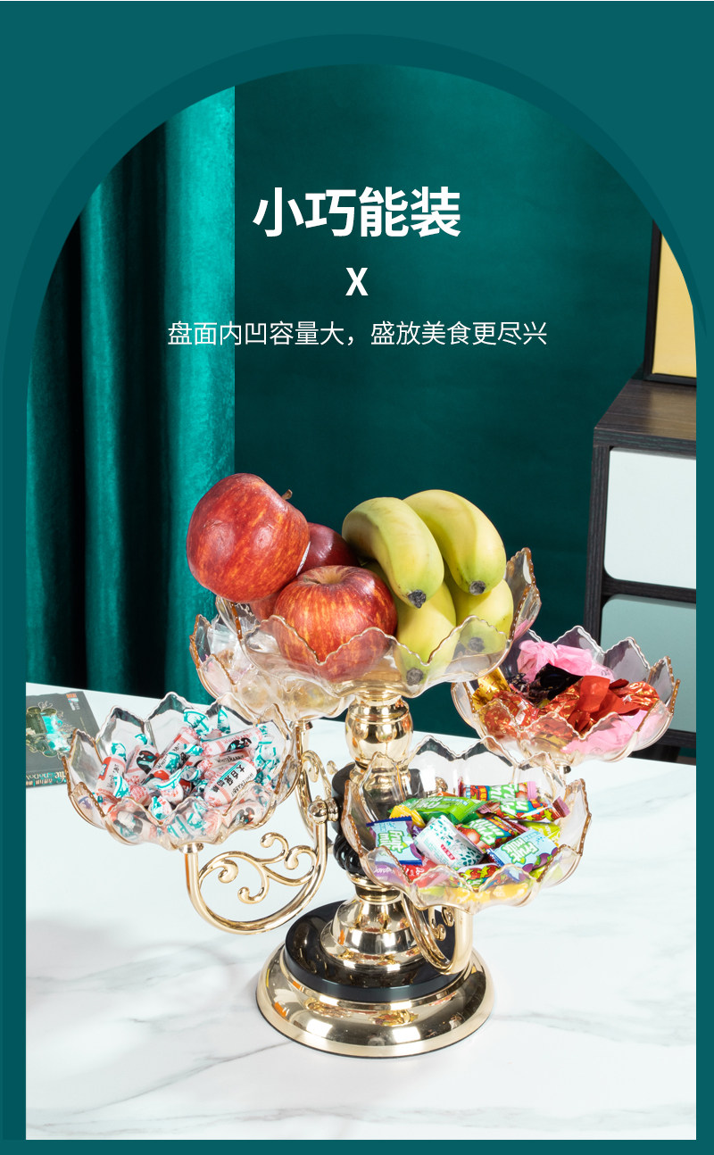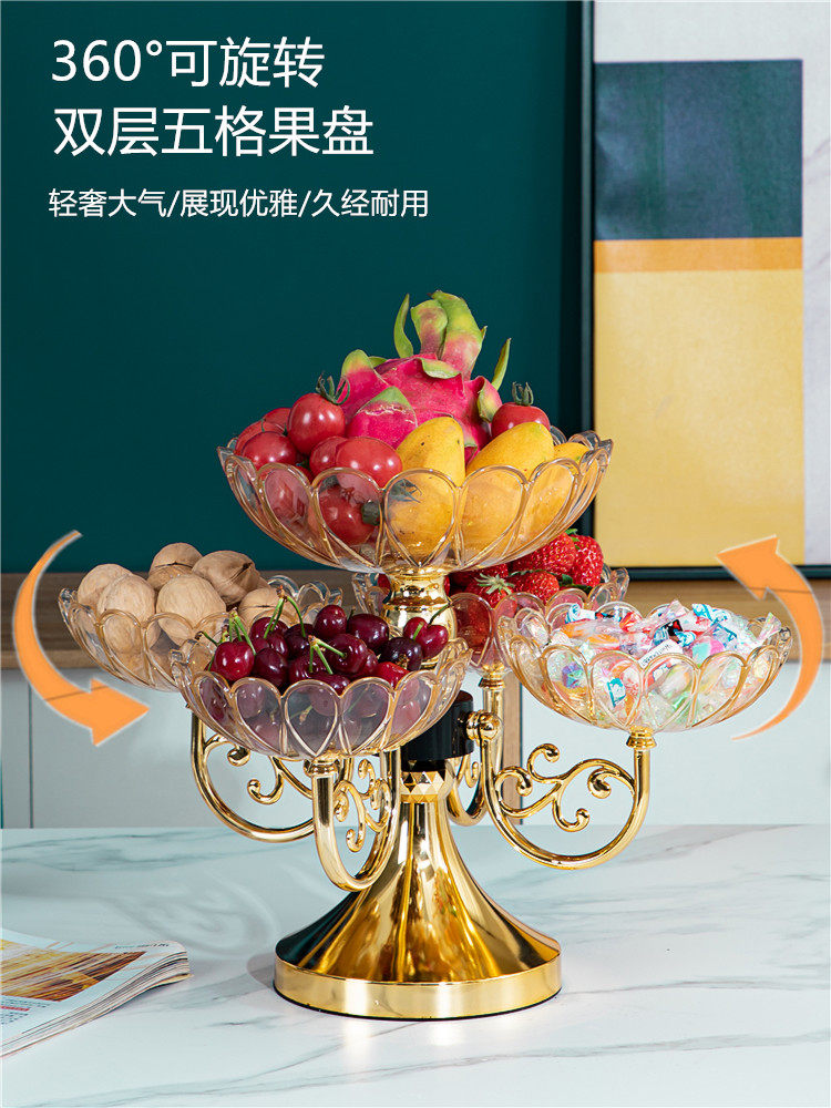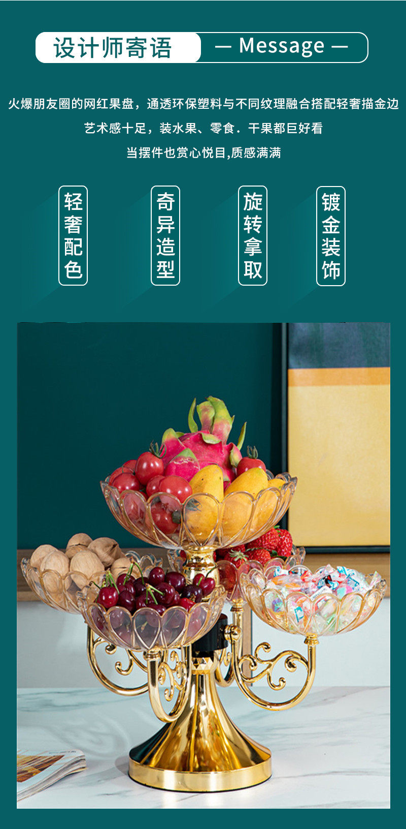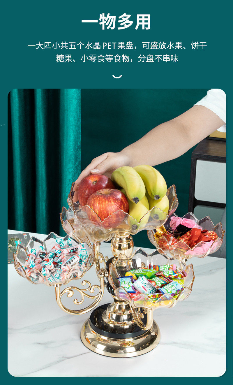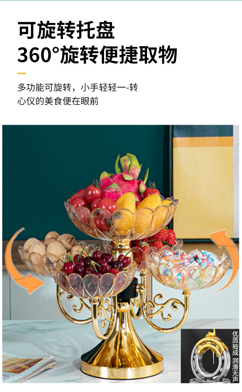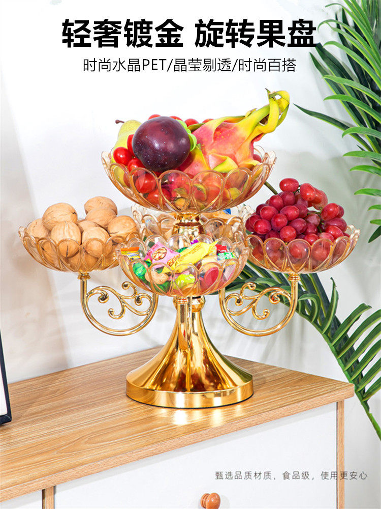 高档轻奢水晶果盘家用客厅茶几旋转水果盘塑料透明零食干果糖果盘
