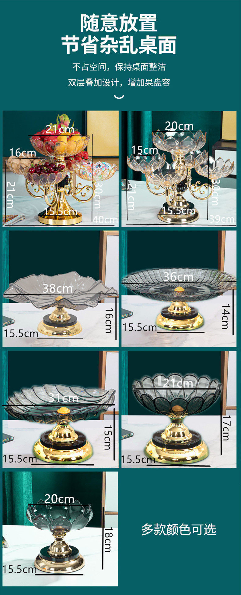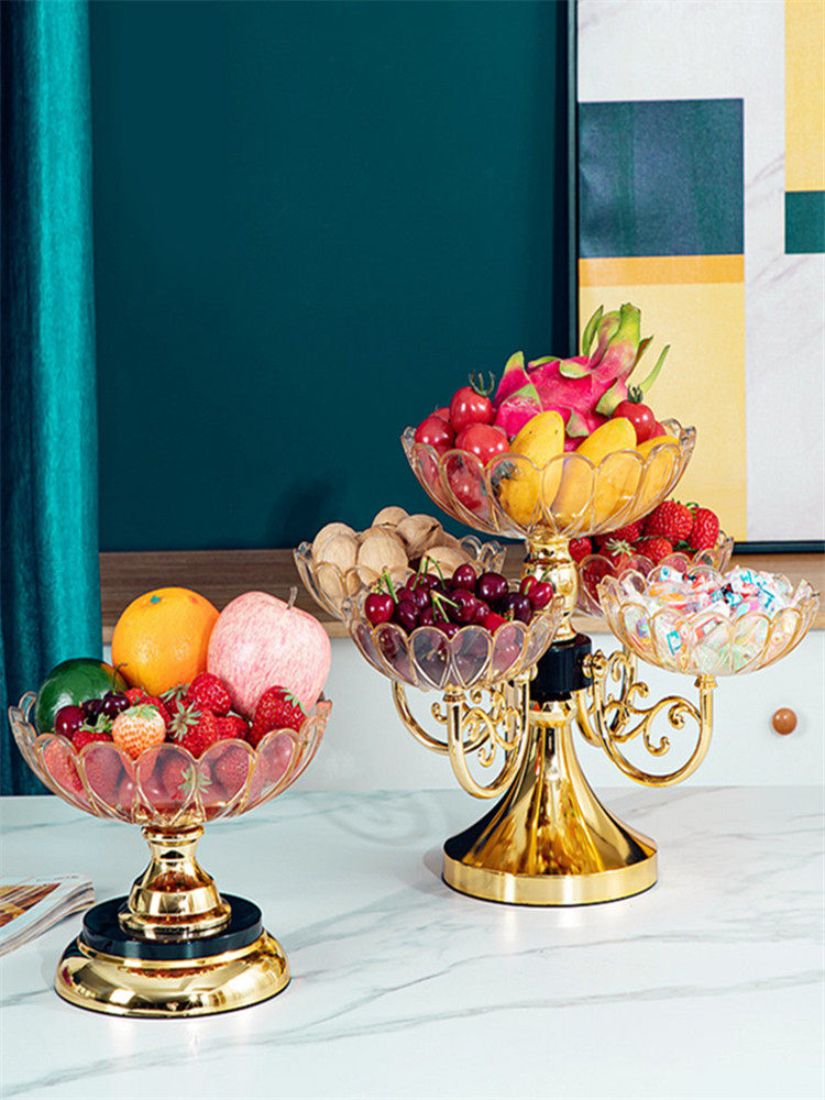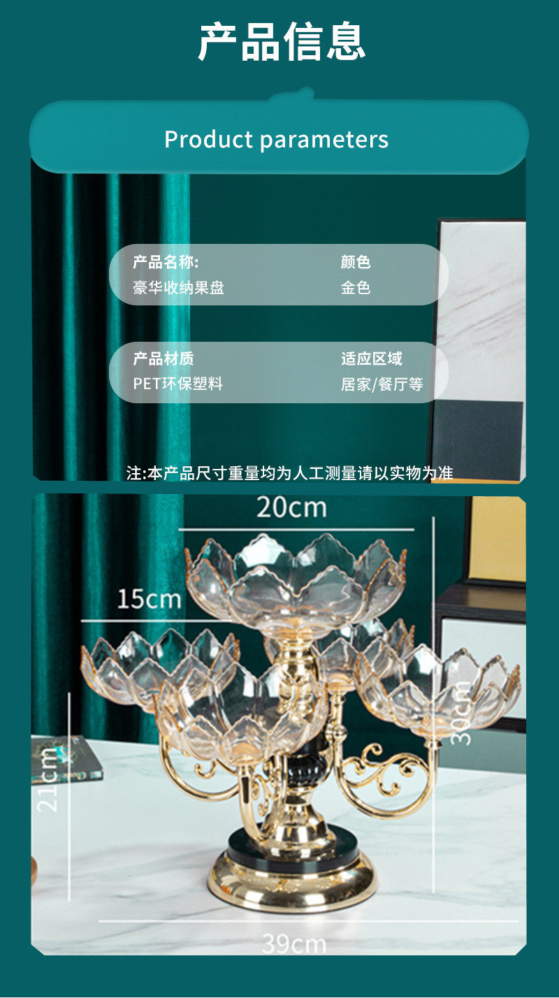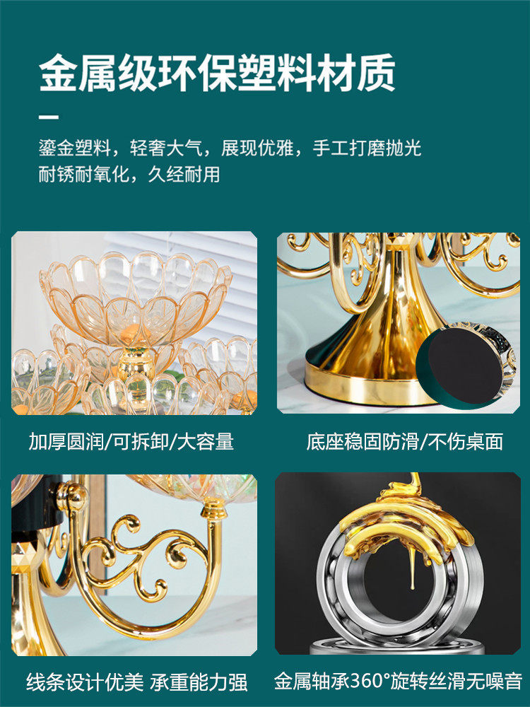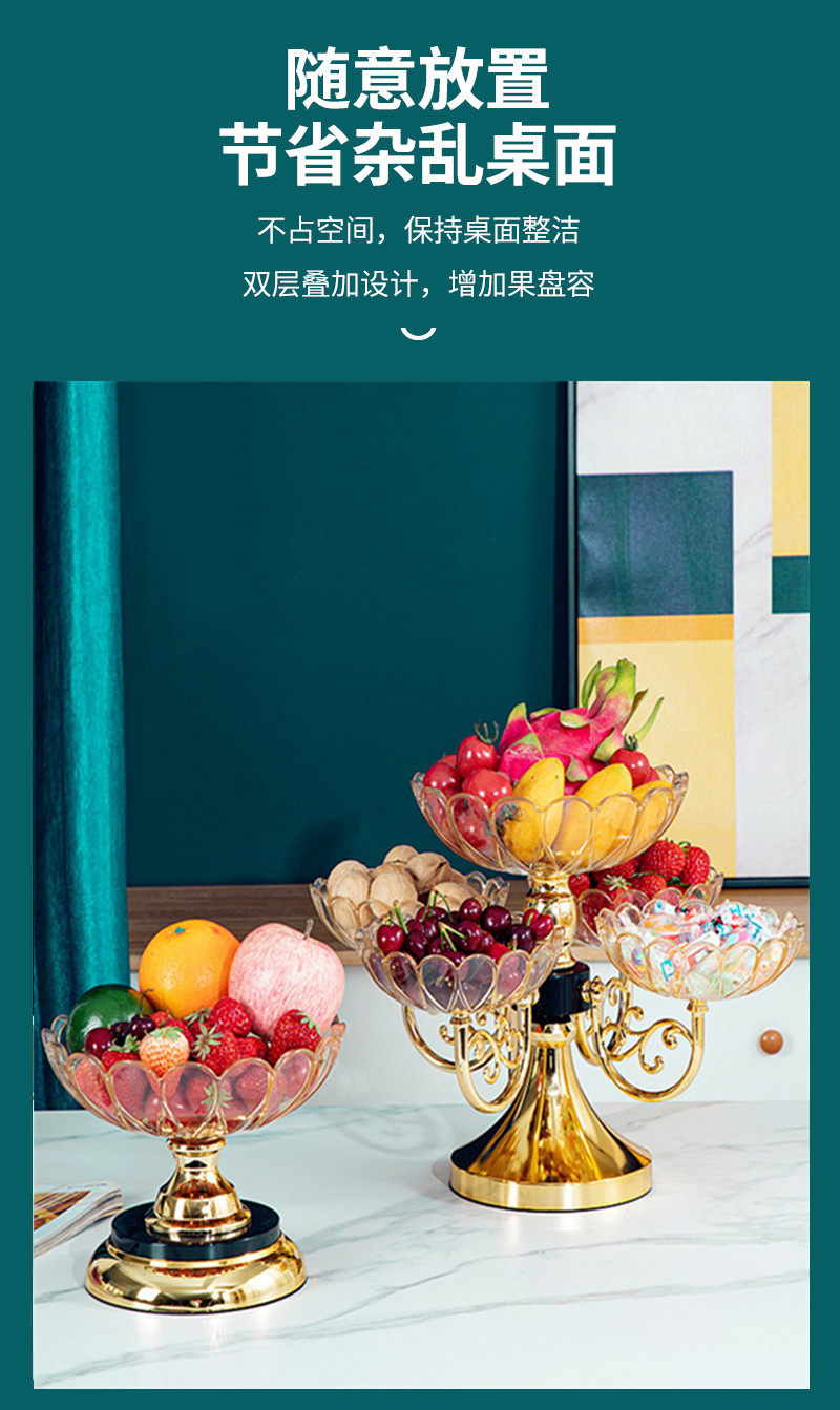 高档轻奢水晶果盘家用客厅茶几旋转水果盘塑料透明零食干果糖果盘