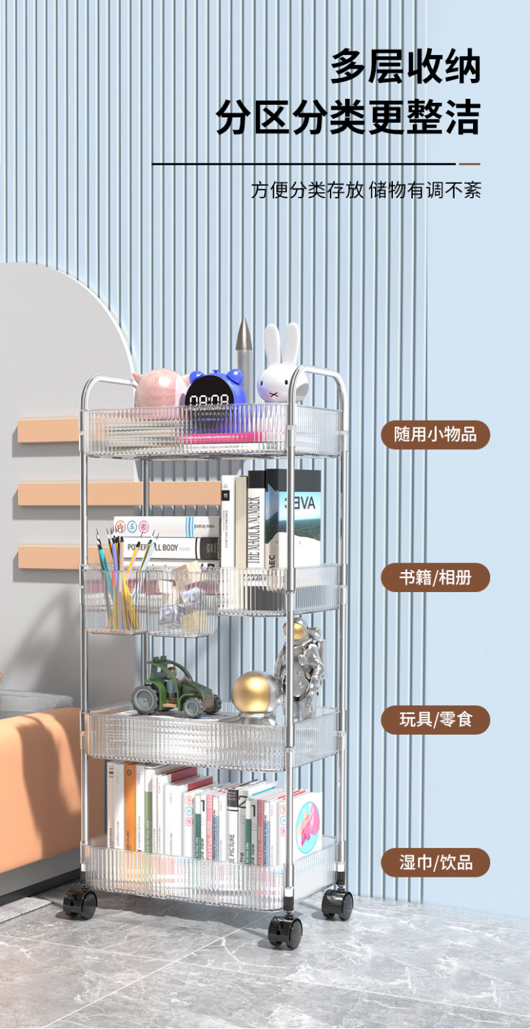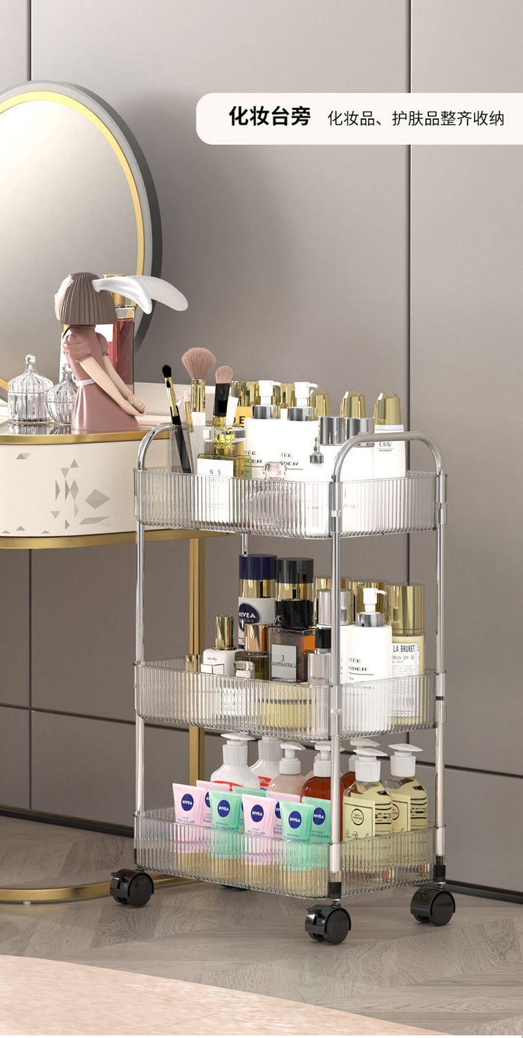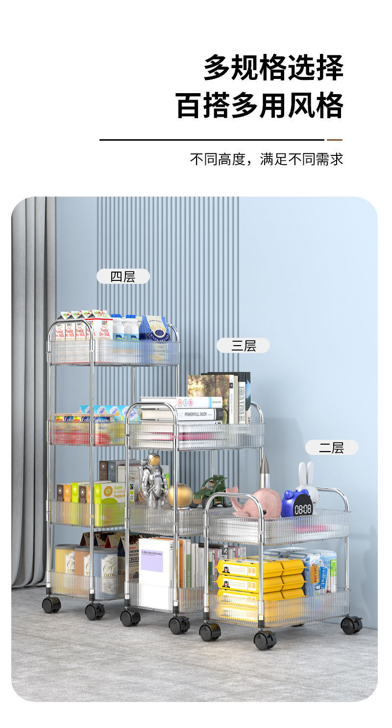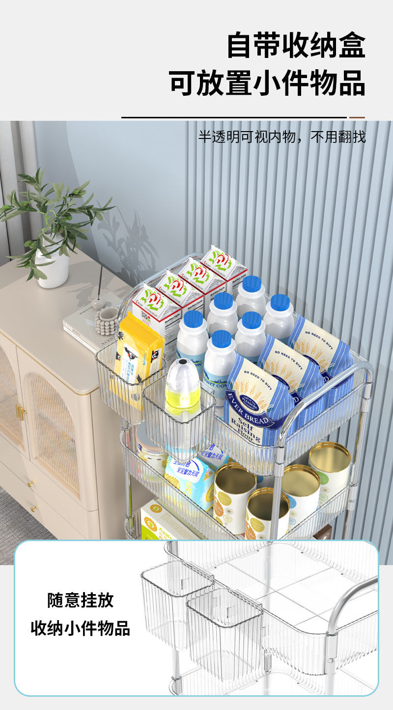 可移动亚克力透明小推车置物架卧室零食架子收纳架化妆品盒滚轮柜
