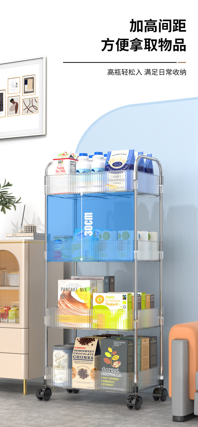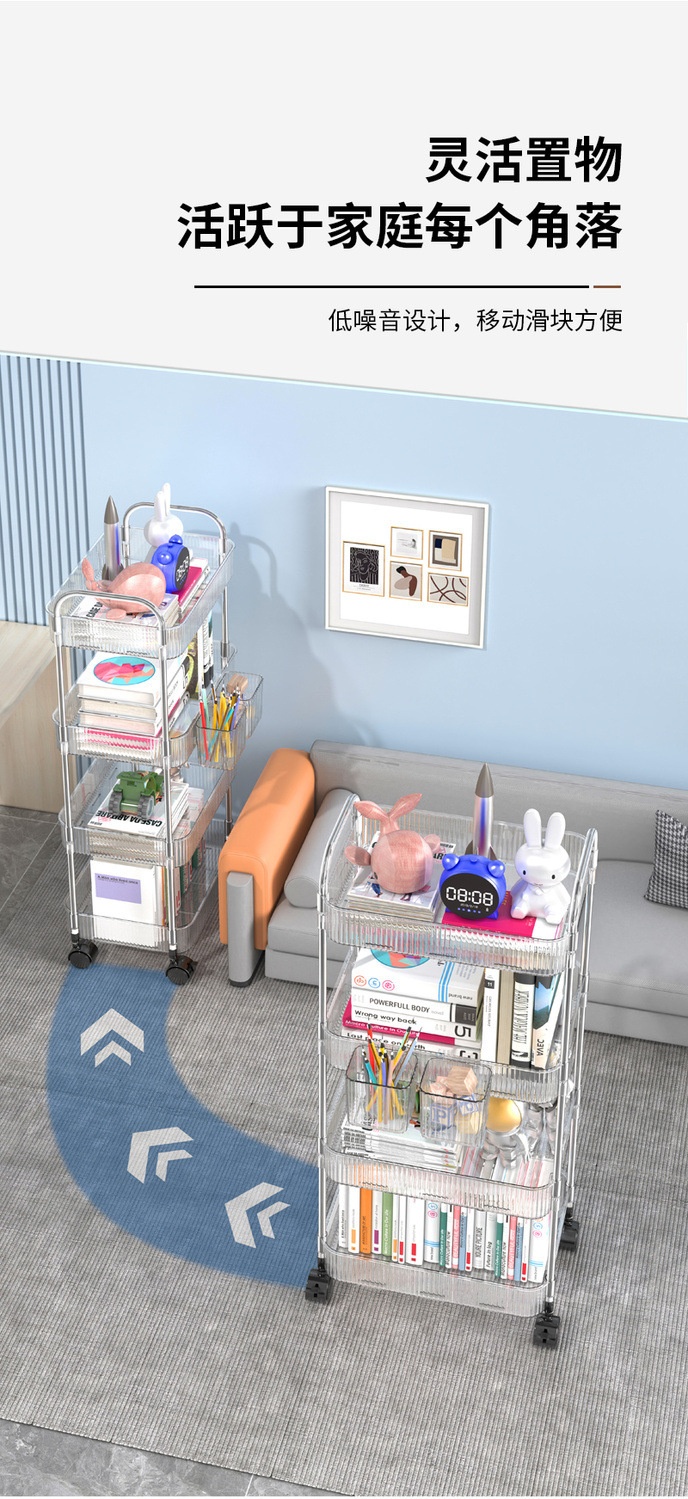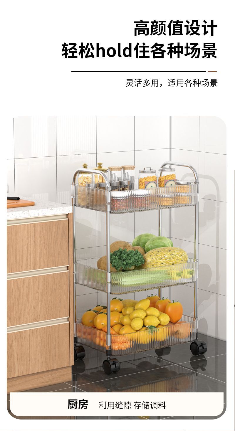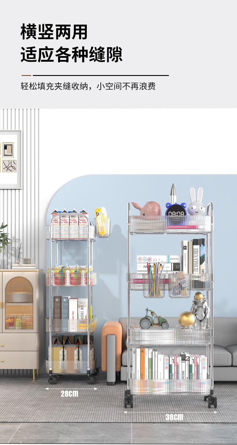 可移动亚克力透明小推车置物架卧室零食架子收纳架化妆品盒滚轮柜