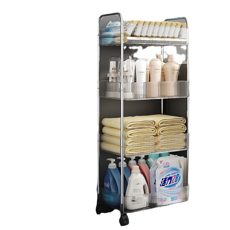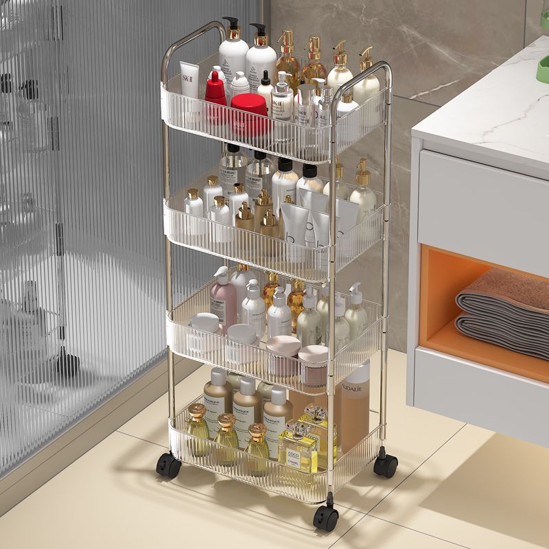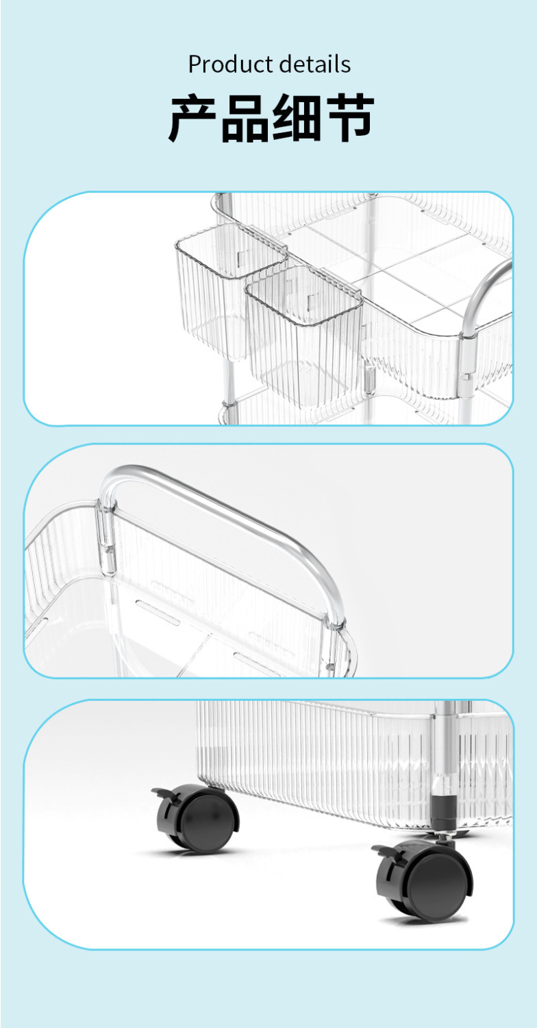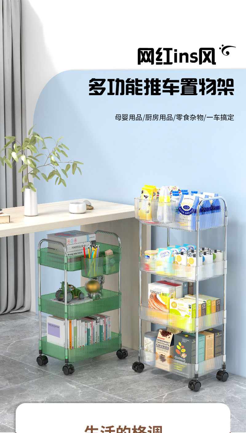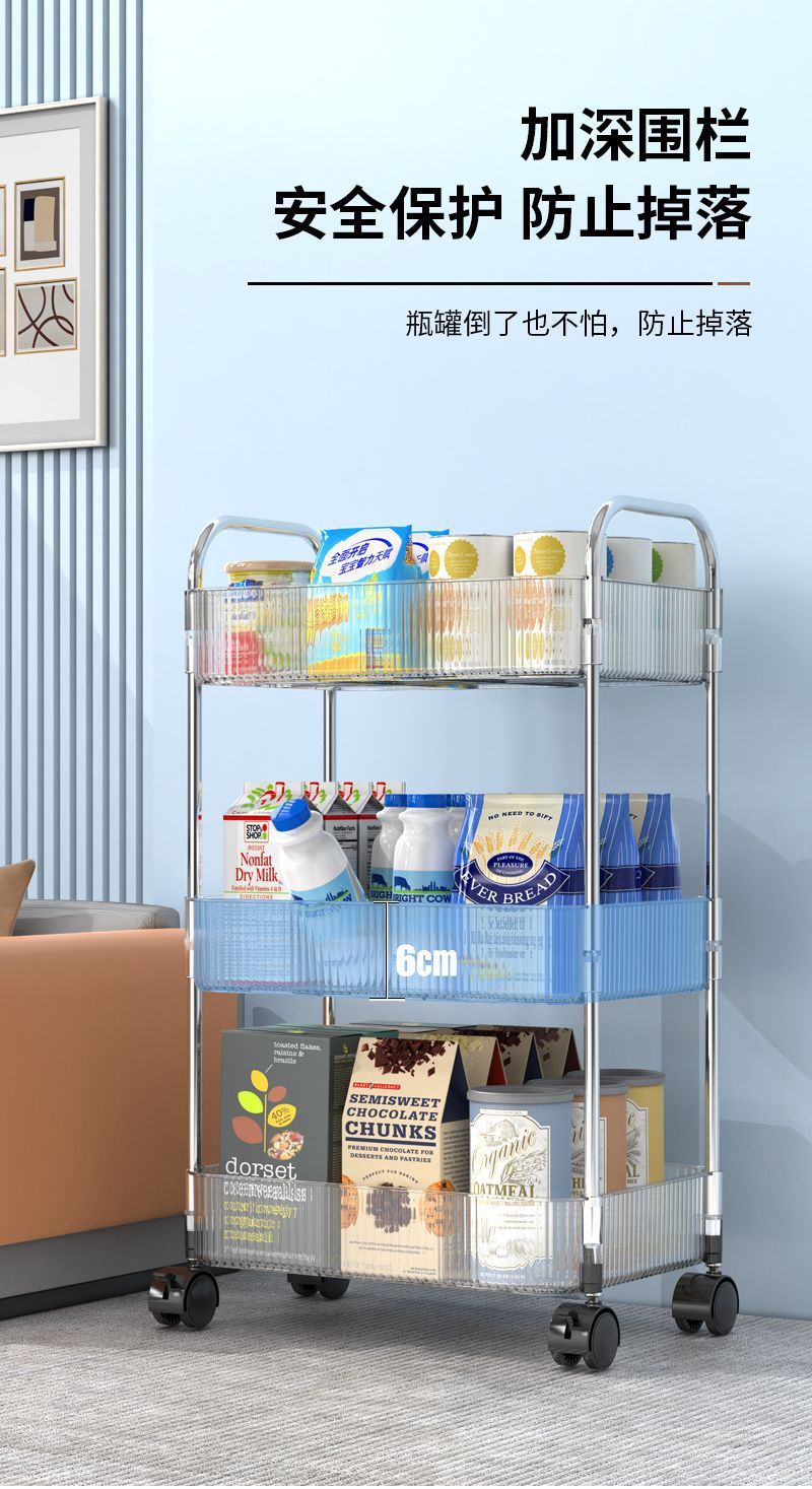 可移动亚克力透明小推车置物架卧室零食架子收纳架化妆品盒滚轮柜