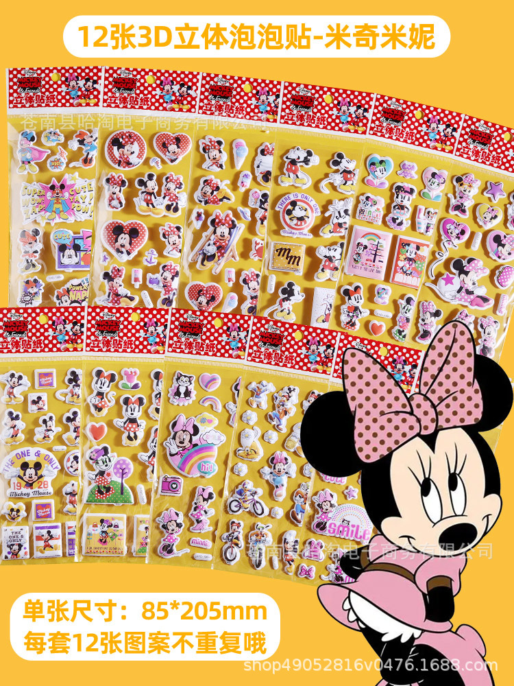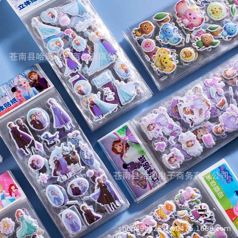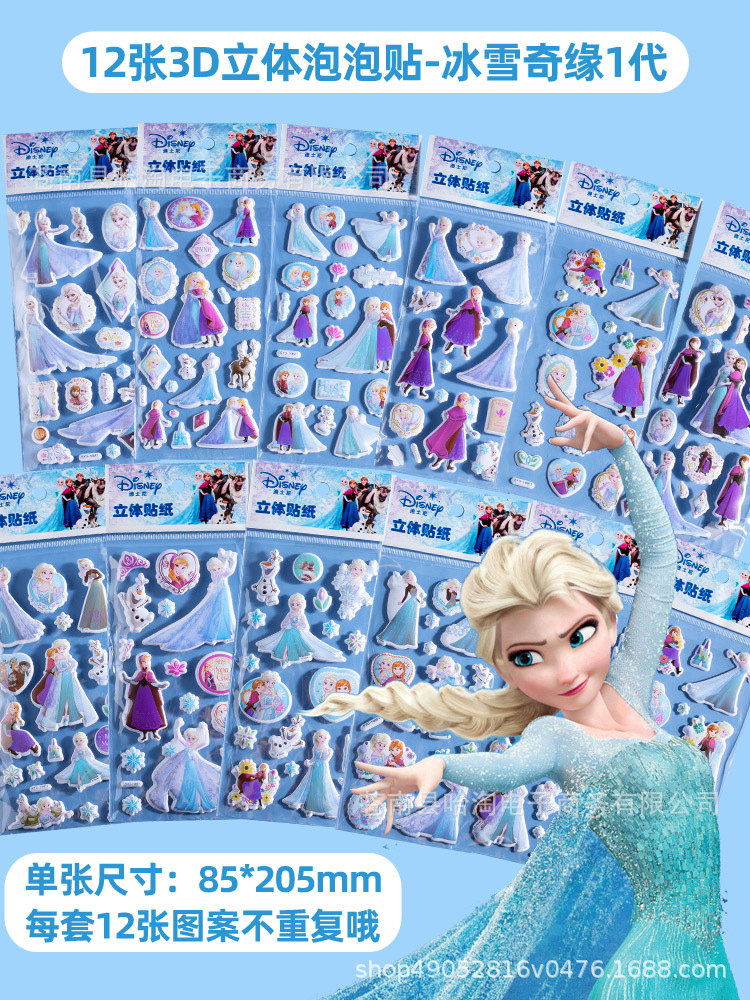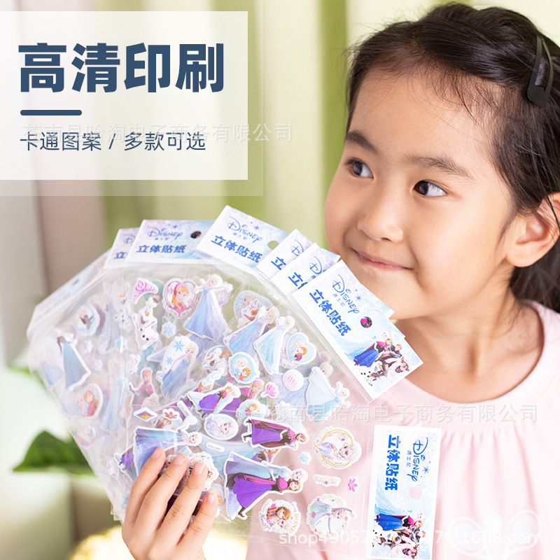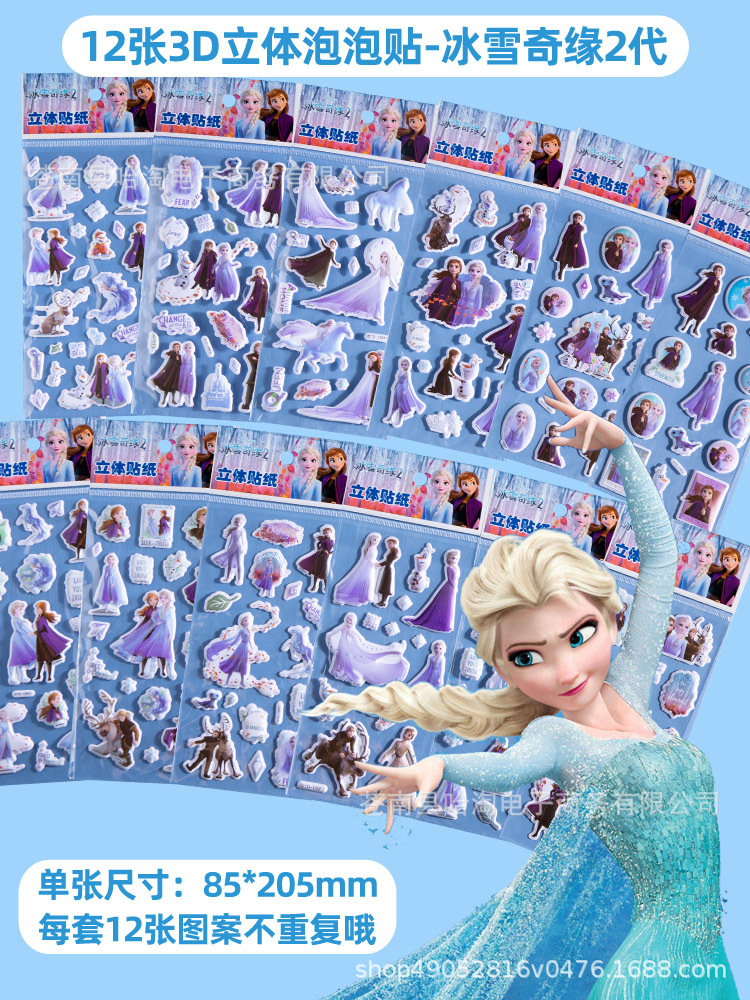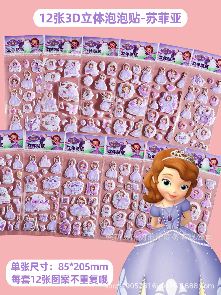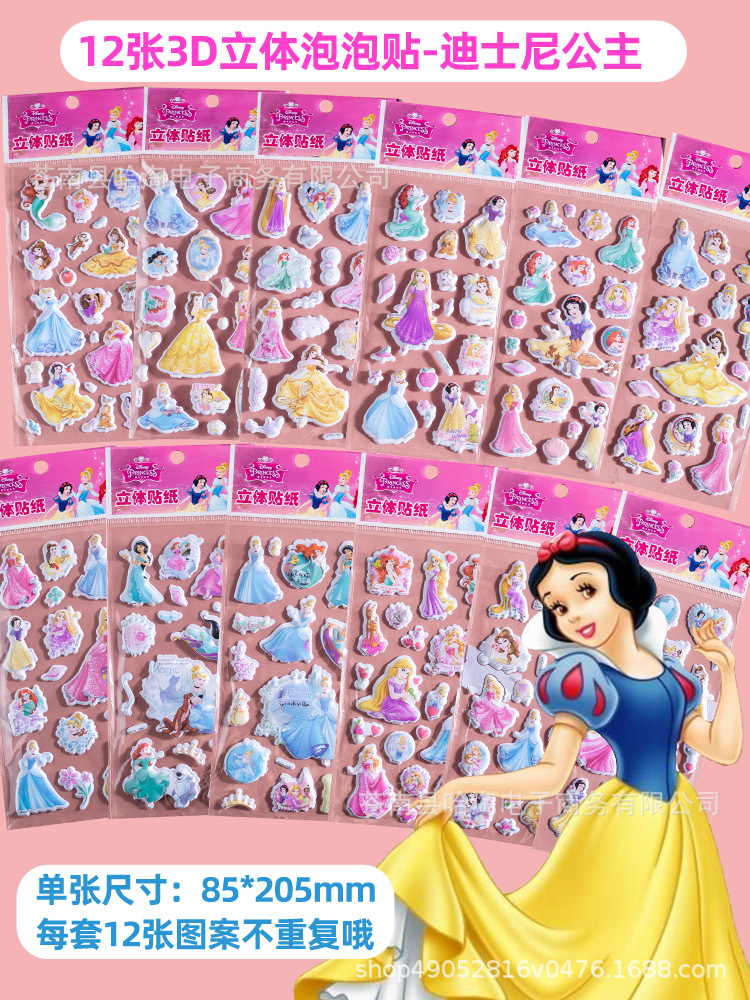儿童贴纸3d立体卡通公主贴画幼儿园男女孩奖励宝宝粘贴泡泡贴贴纸