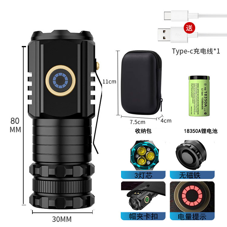 跨境抖音新款强光远射手电筒户外多功能帽夹灯超亮迷你便携小手电