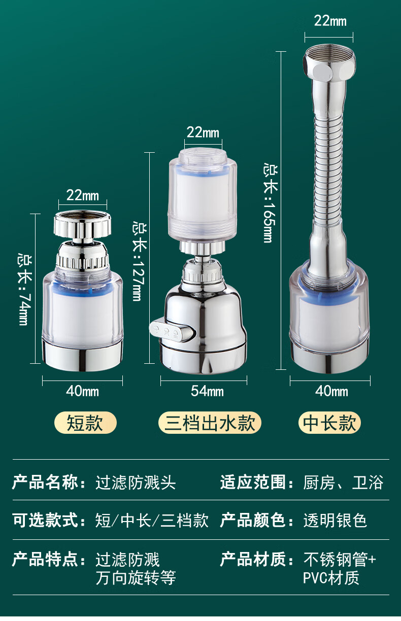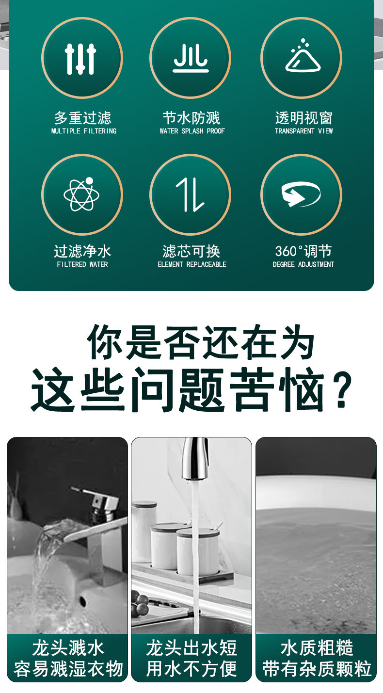 厨房水龙头过滤器冷热水通用万向龙头延伸器防溅头家用龙头起泡器