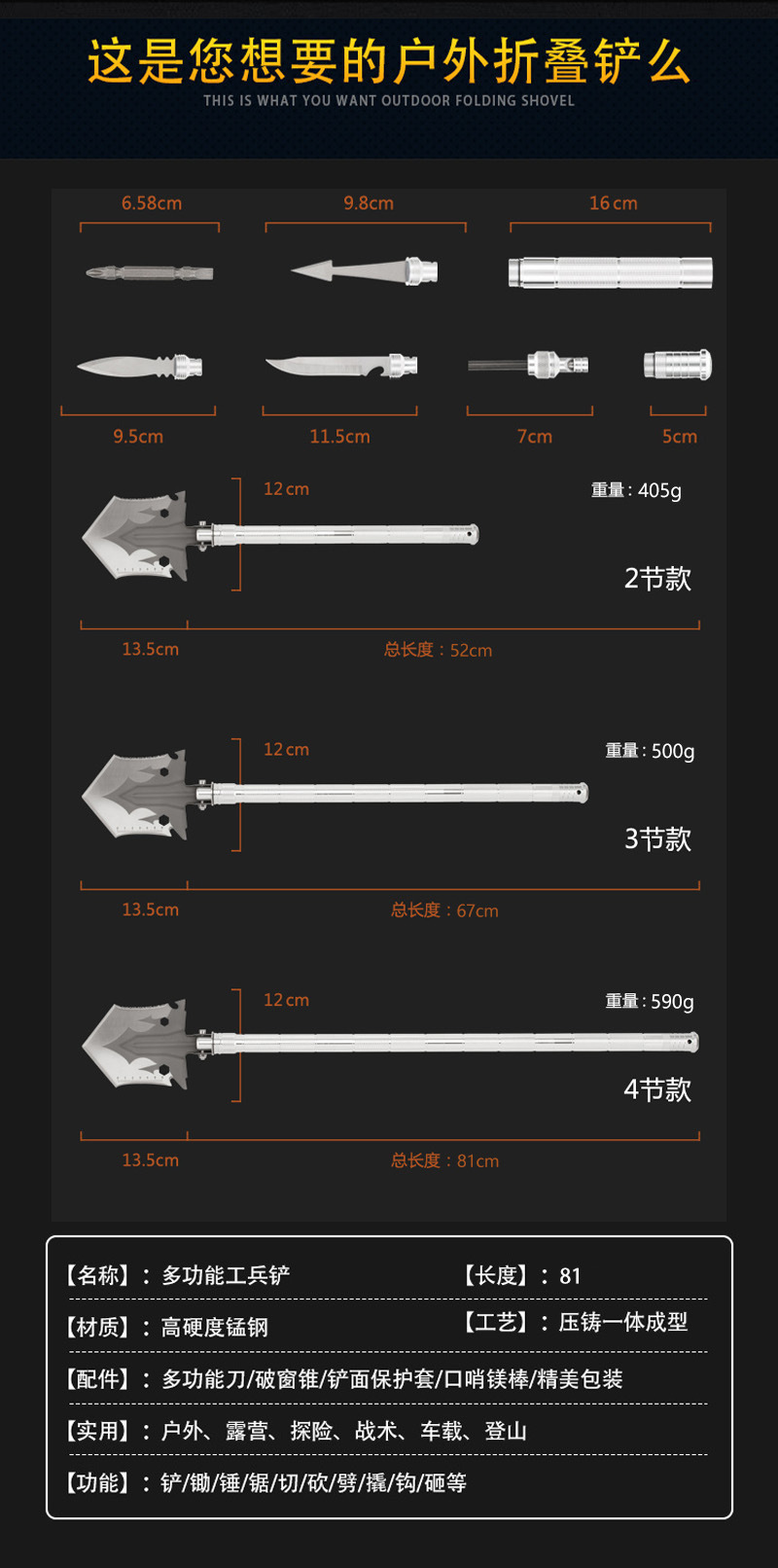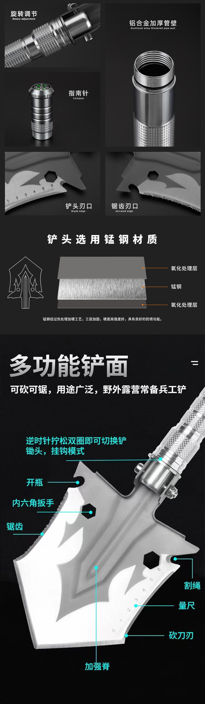 户外用品亚马逊速卖通热卖多功能工兵铲折叠兵工铲军工铲野营工具